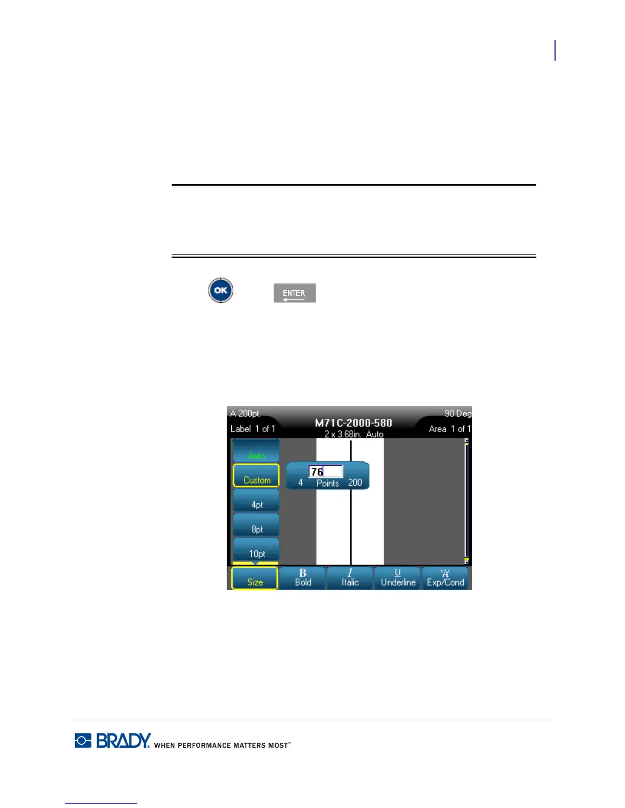 When you begin entering a font size, the system automatically jumps to the Custom