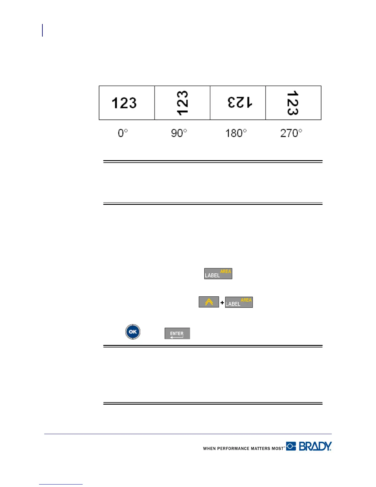 Rotation flips the data on a label or in an area, counter-clockwise, at 90° increments. Rotation