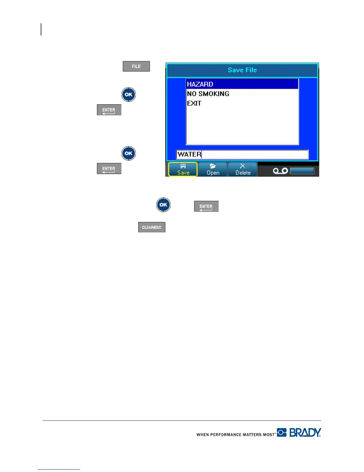 If you want to remove the saved file from the screen, press [CLEAR/ESC]. (See “Clear/Esc”