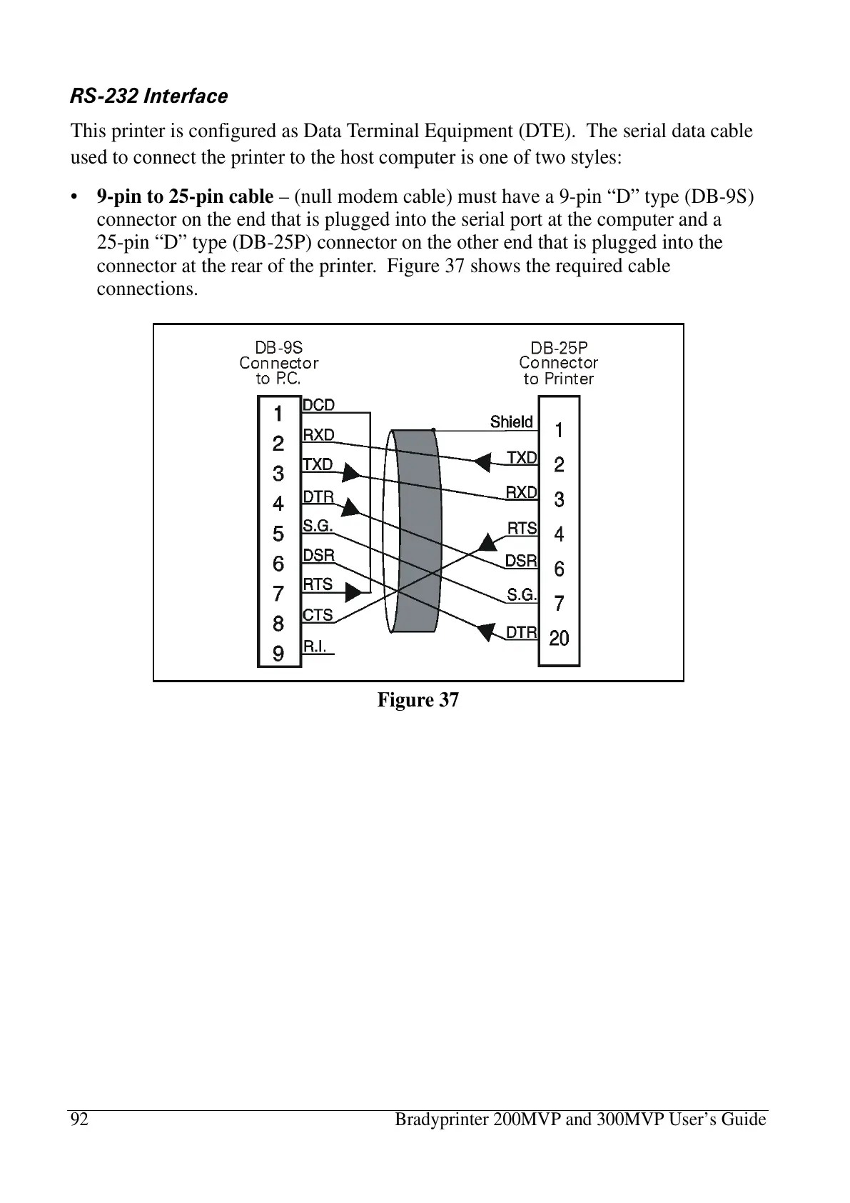 This printer is configured as Data Terminal Equipment (DTE). The serial data cable