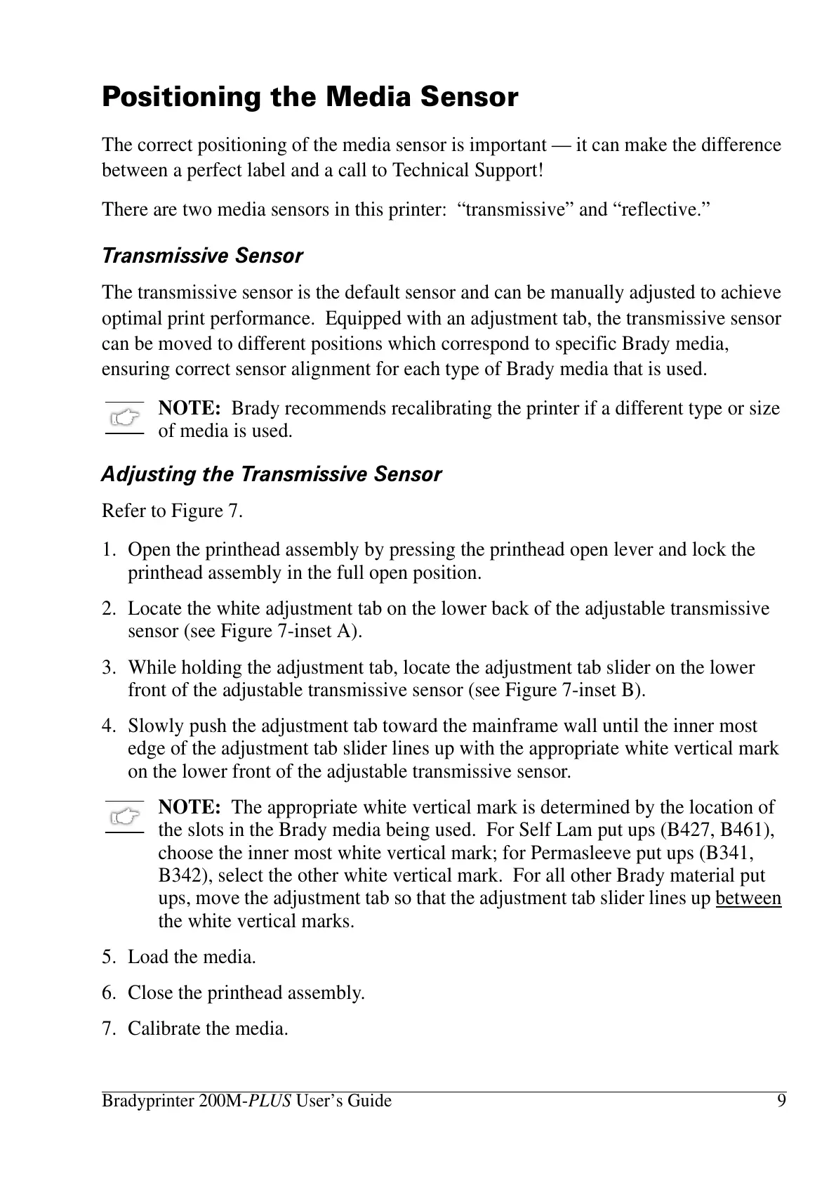 ensuring correct sensor alignment for each type of Brady media that is used.