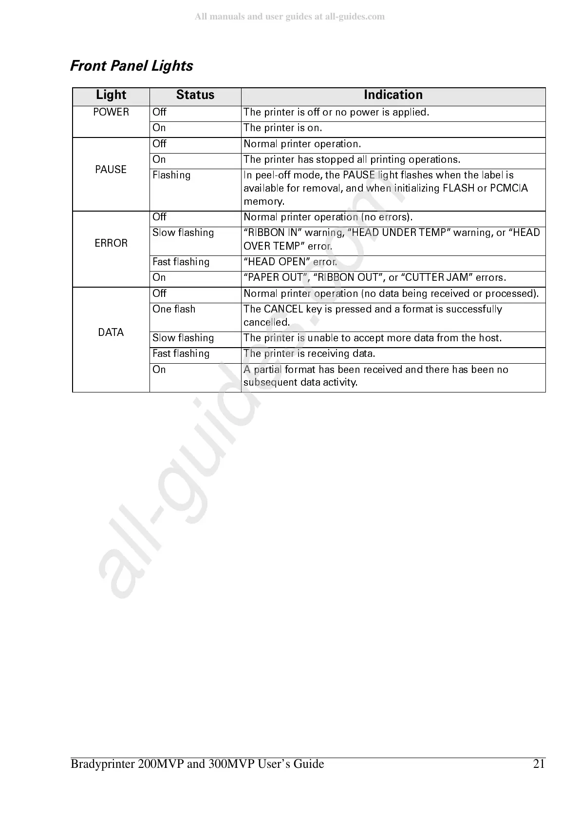 Bradyprinter 200MVP and 300MVP User’s Guide 21