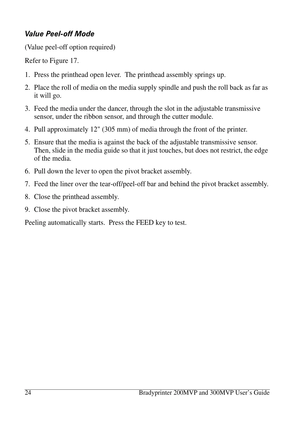 24 Bradyprinter 200MVP and 300MVP User’s Guide