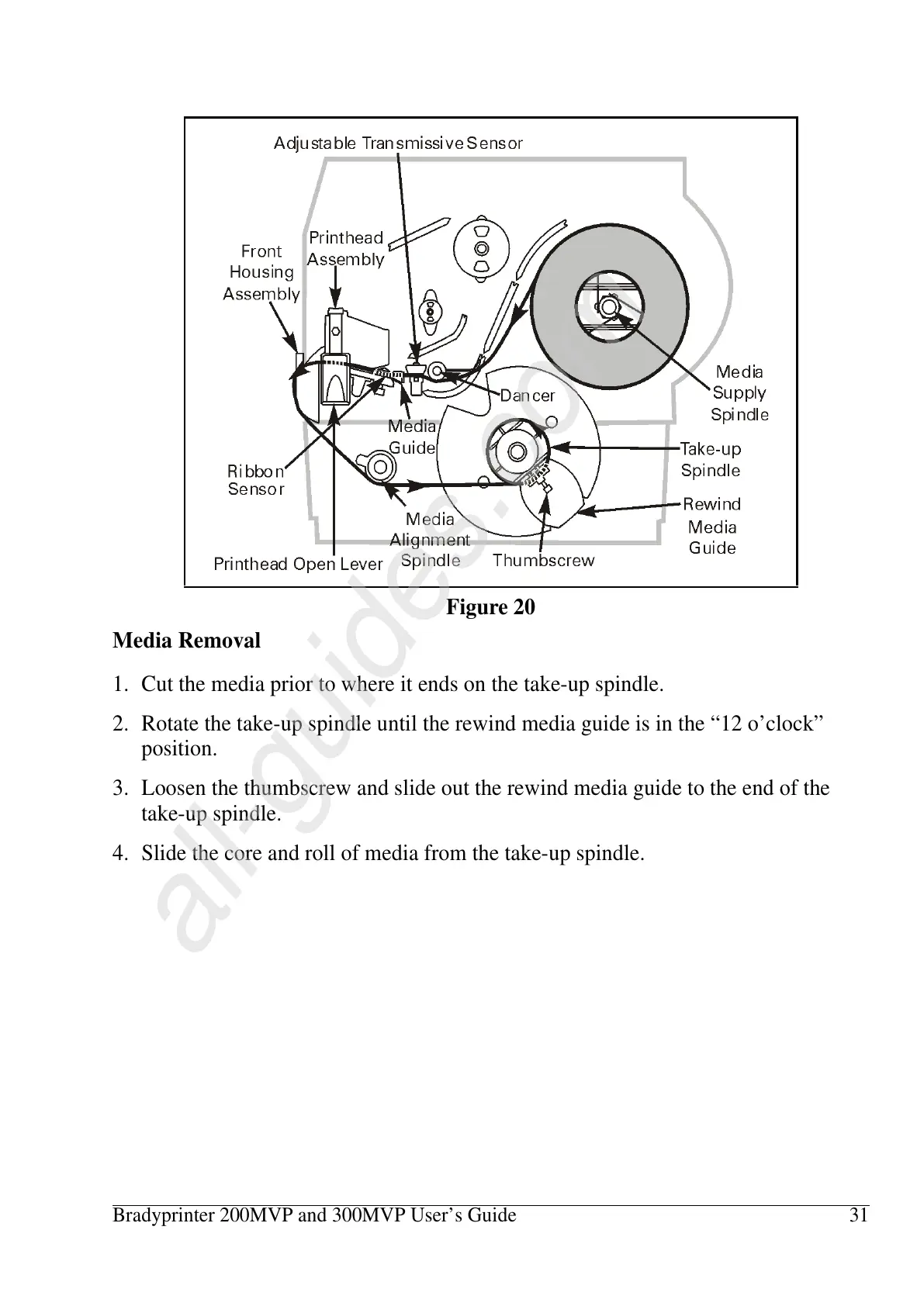 1. Cut the media prior to where it ends on the take-up spindle.