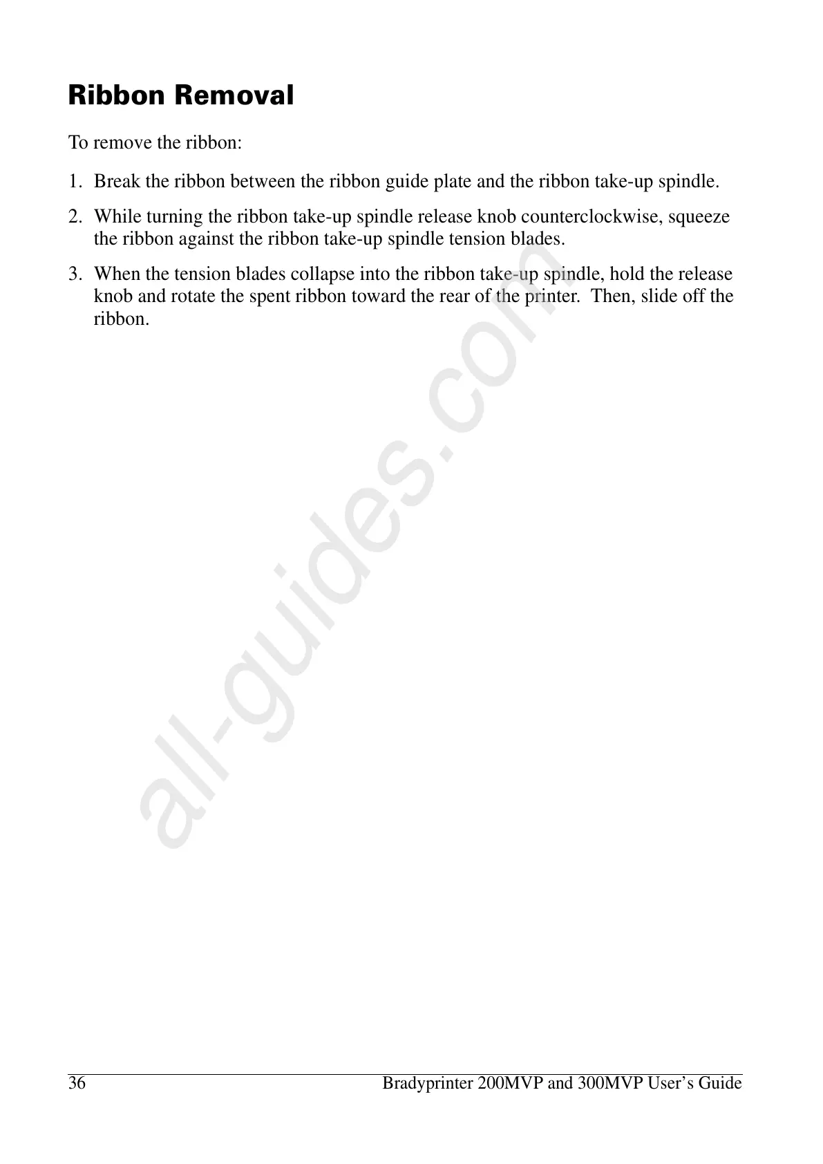 1. Break the ribbon between the ribbon guide plate and the ribbon take-up spindle.