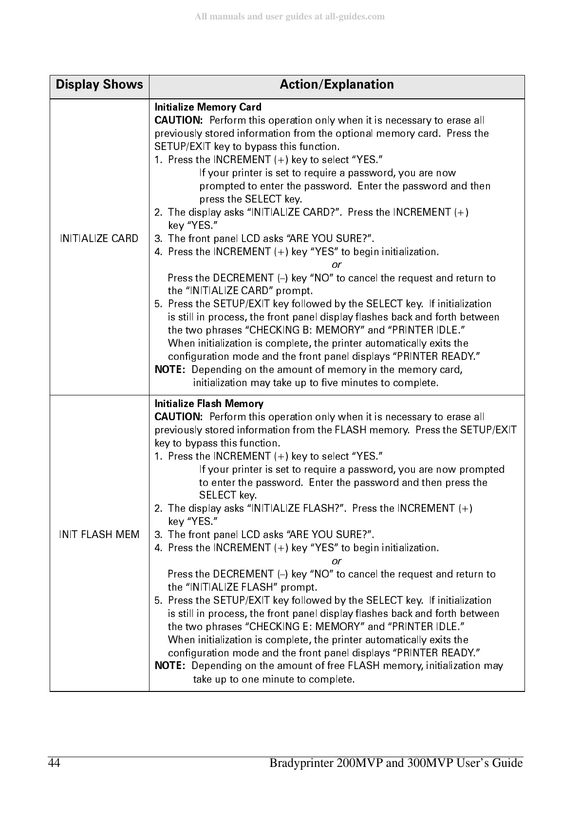 44 Bradyprinter 200MVP and 300MVP User’s Guide