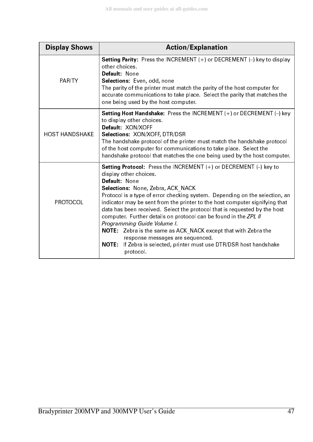Bradyprinter 200MVP and 300MVP User’s Guide 47