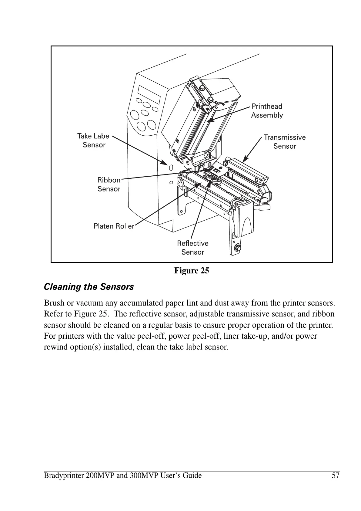 sensor should be cleaned on a regular basis to ensure proper operation of the printer.