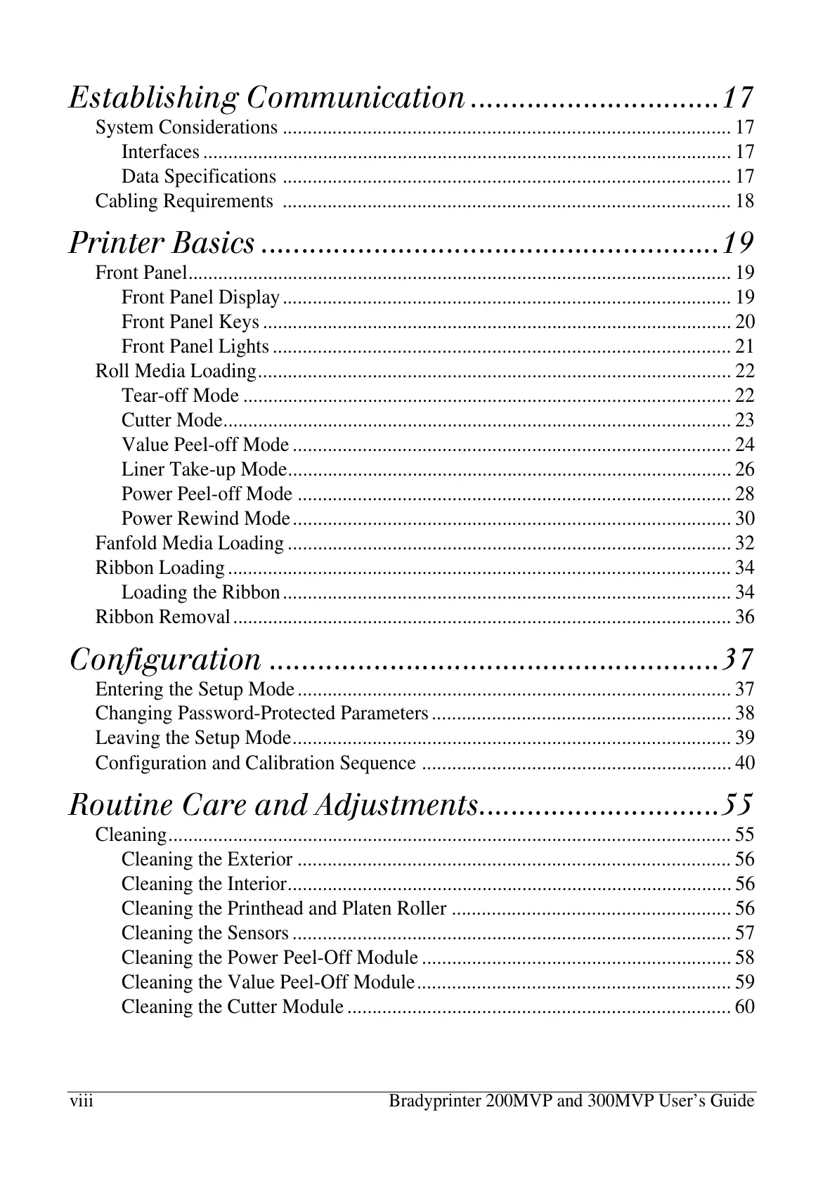 viii Bradyprinter 200MVP and 300MVP User’s Guide