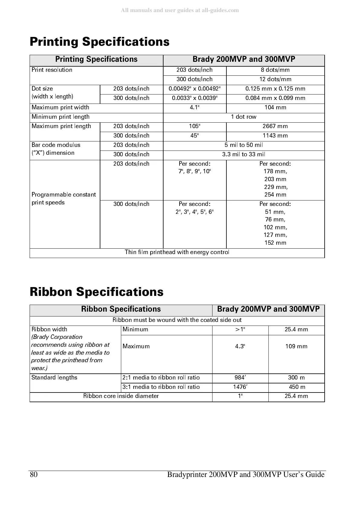 80 Bradyprinter 200MVP and 300MVP User’s Guide