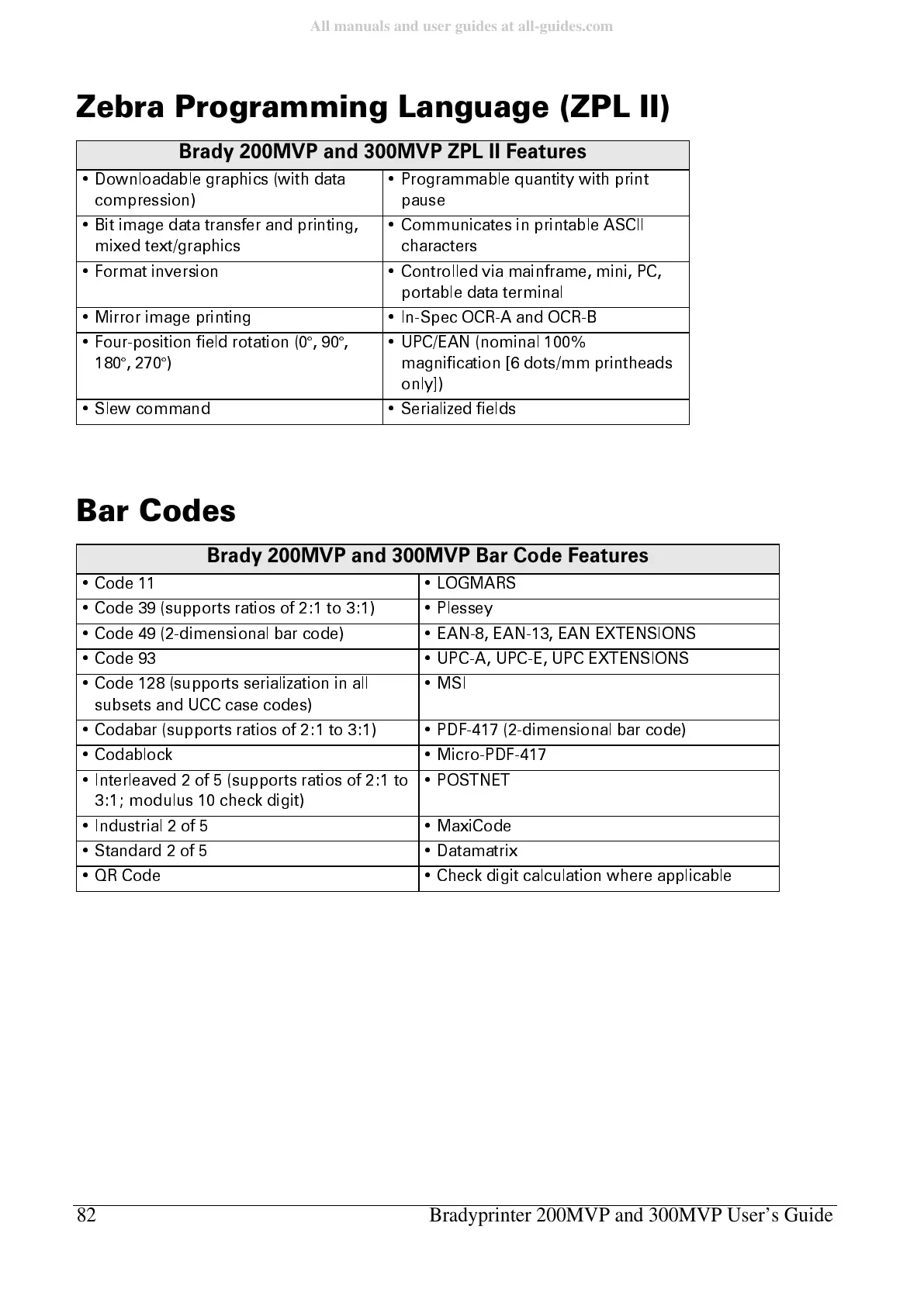 82 Bradyprinter 200MVP and 300MVP User’s Guide