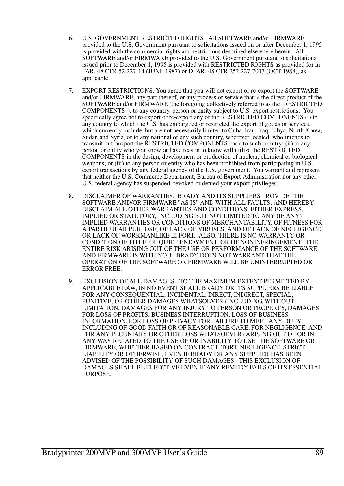 AND FIRMWARE IS WITH YOU. BRADY DOES NOT WARRANT THAT THE