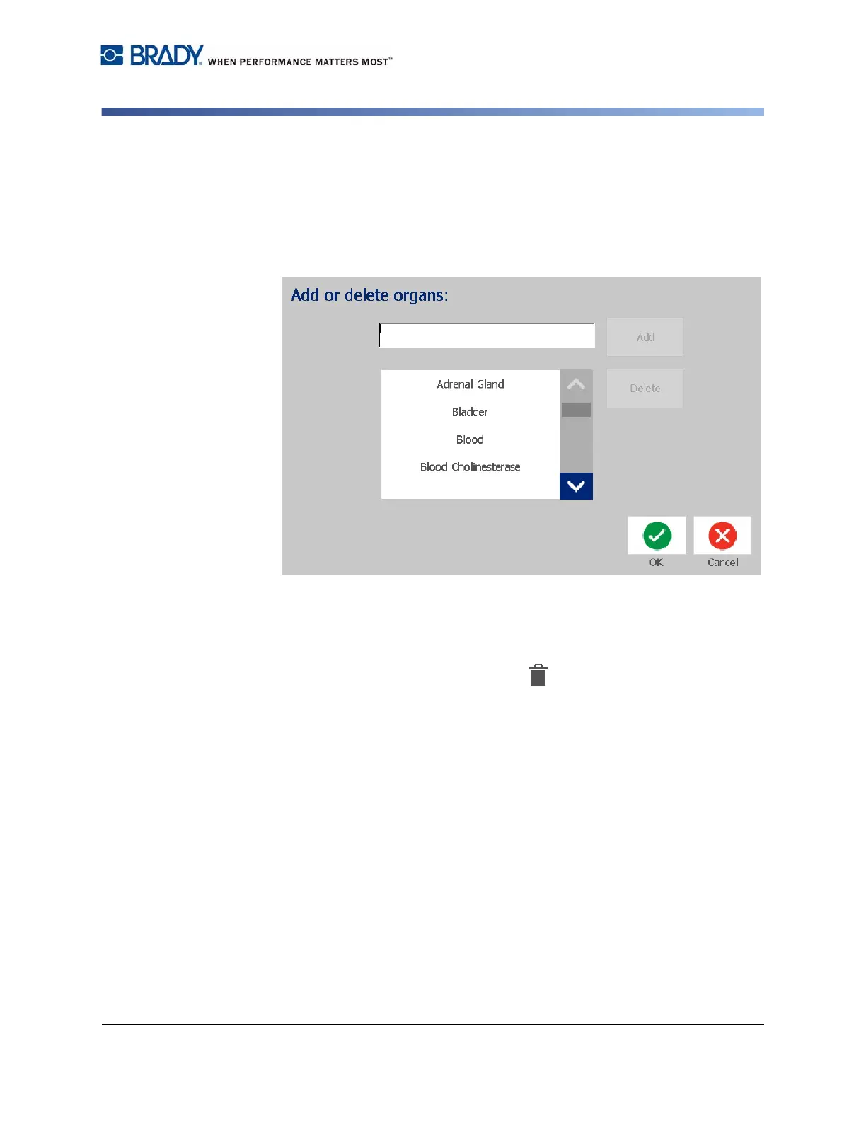 2. In the Add or delete organs dialog, type the new organ you want to include.
