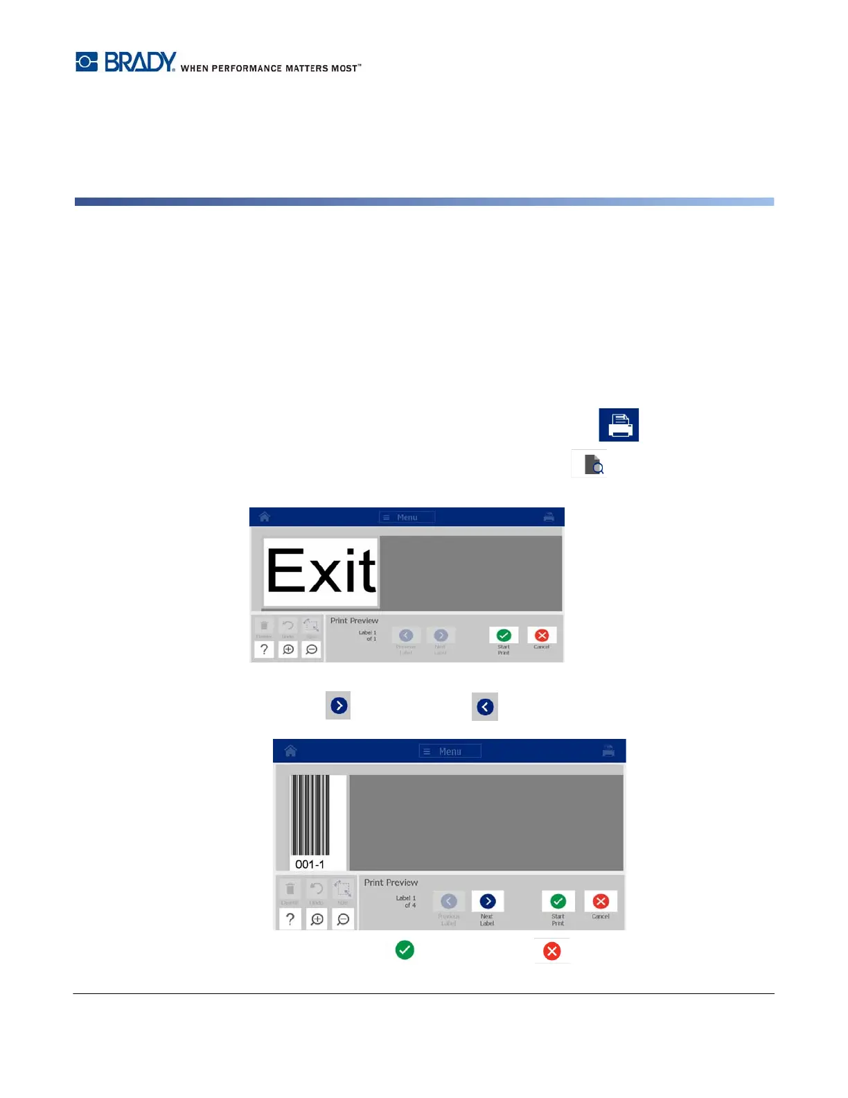 2. From the Print dialog box, touch the Preview button . The entire label is