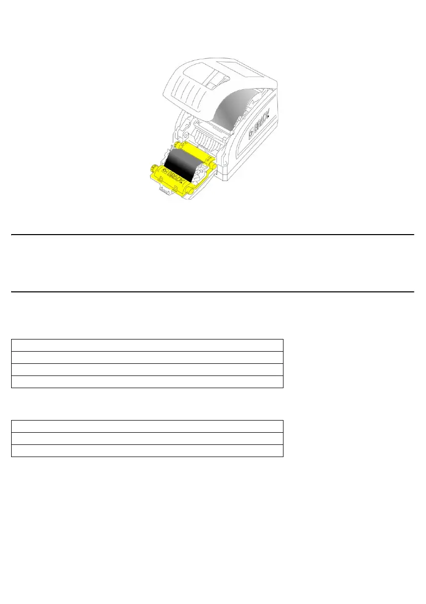 1. Placez la cartouche de ruban avec le ruban au-dessus de la tête d'impression (étiquette de produit vers la