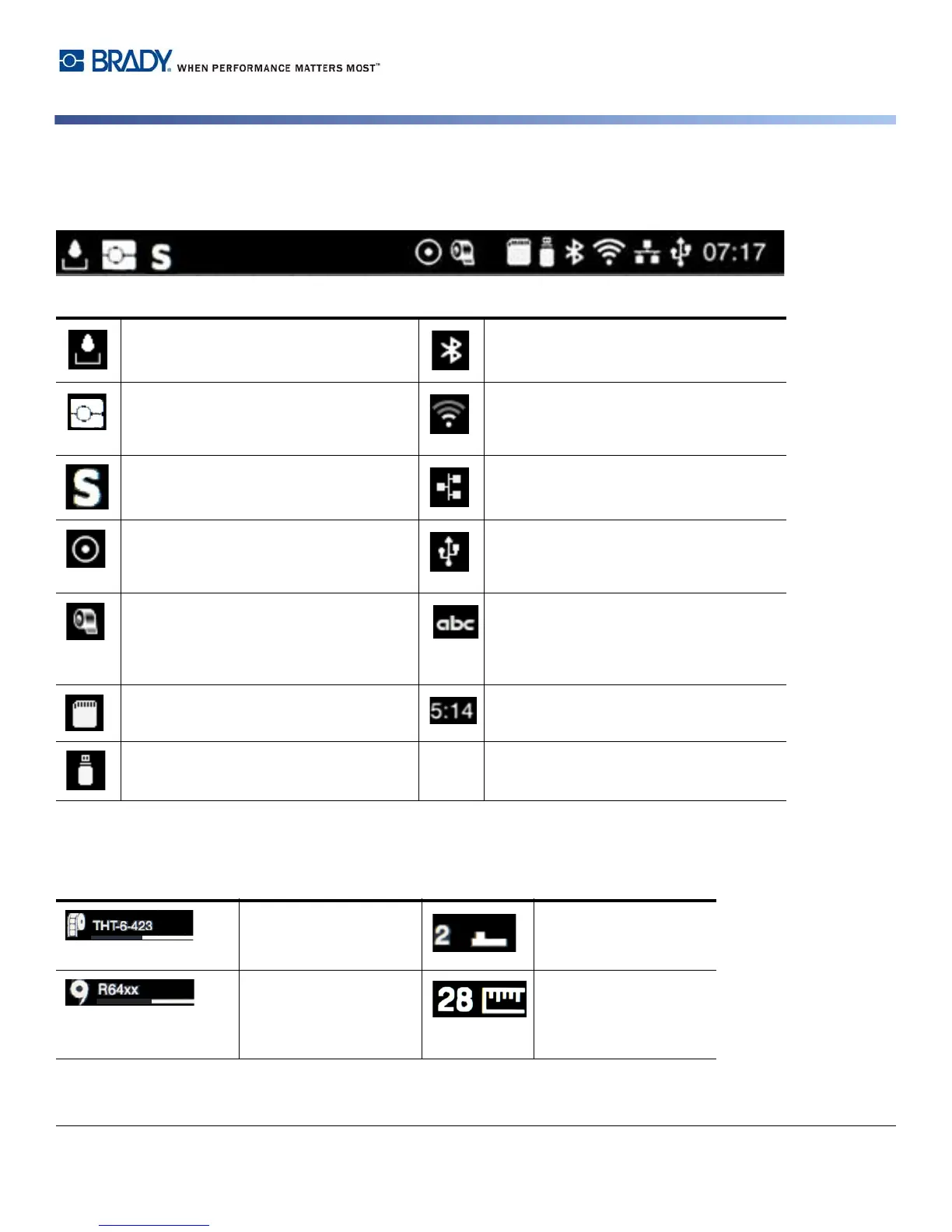 Icons will appear dependent on the configuration and printing situation.