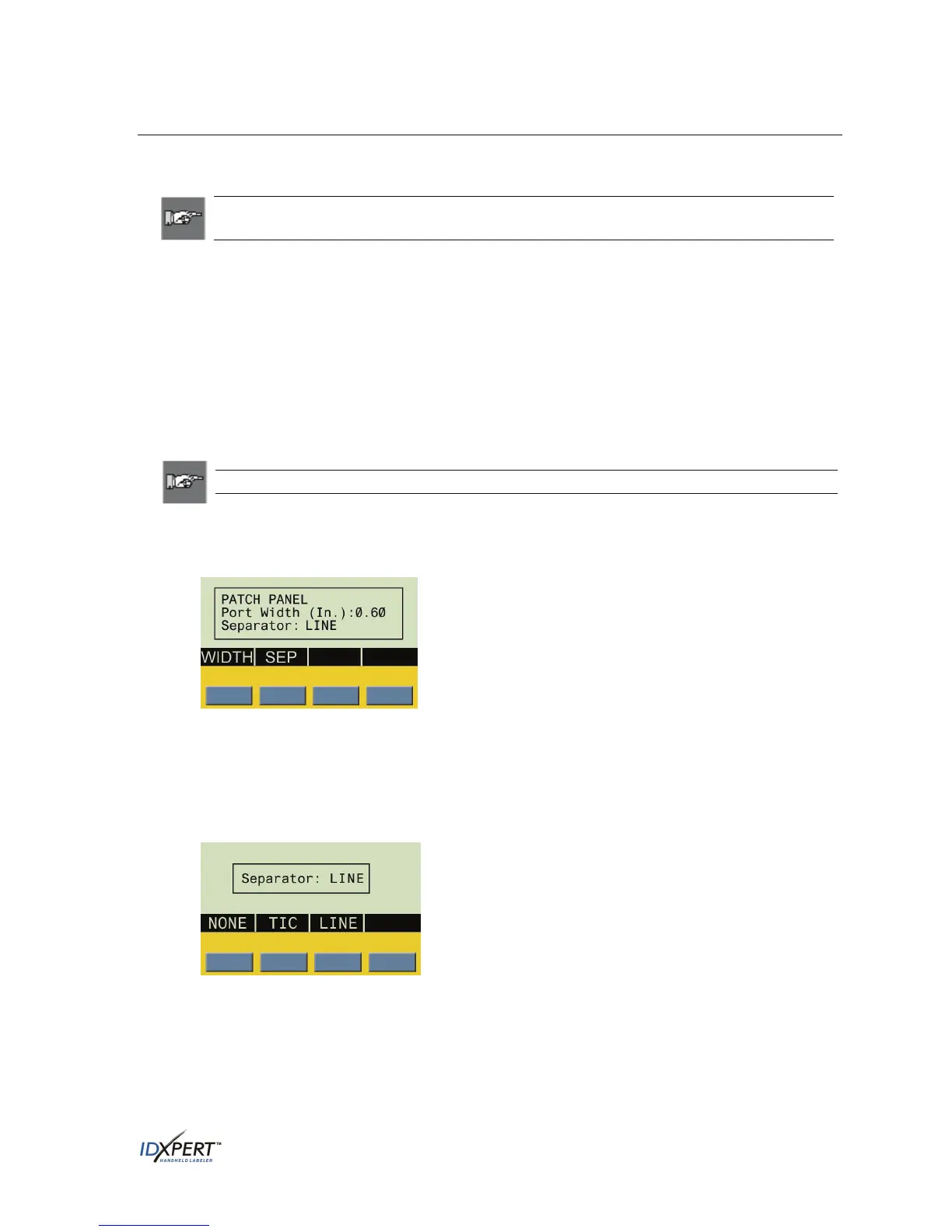 Step 5. Press the desired separator type softkey (