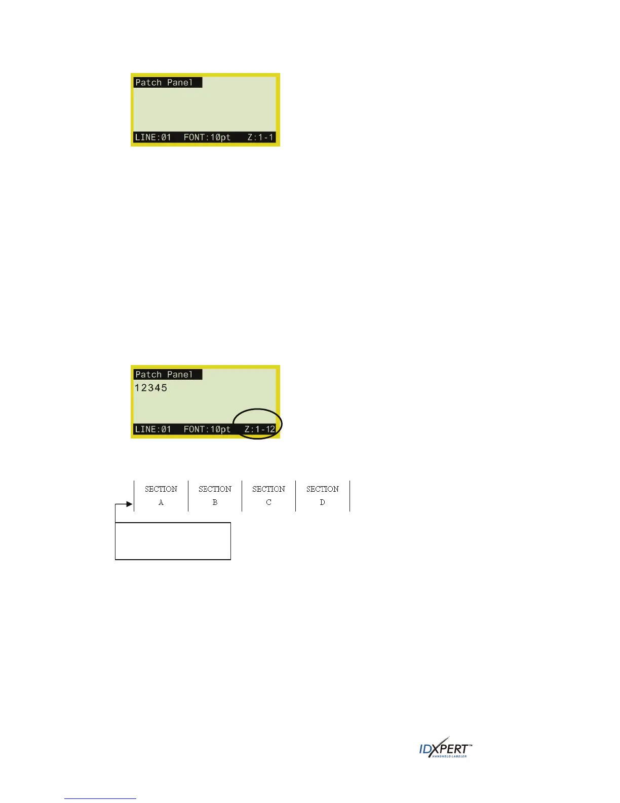 • The example below shows a Patch Panel label that utilizes 12 zones with the first of