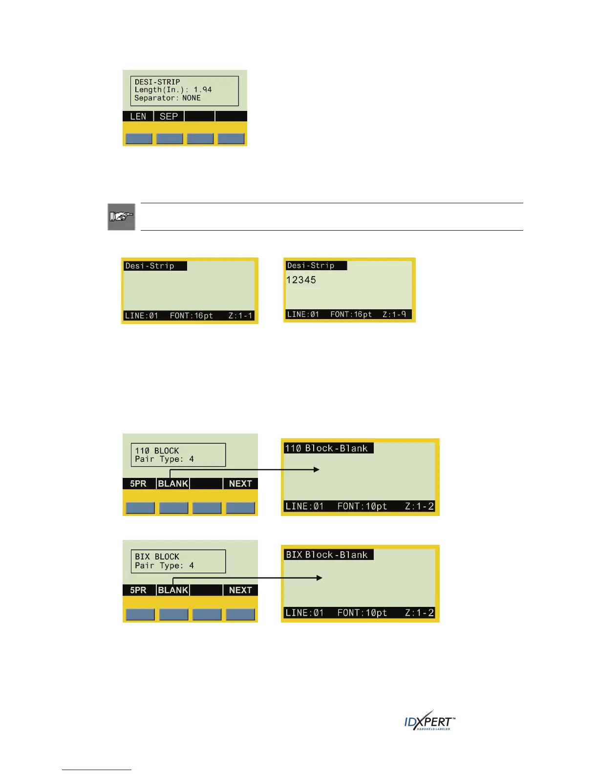 Block labels), you will move to the DataComm & T-Block menu, allowing you to enter characters