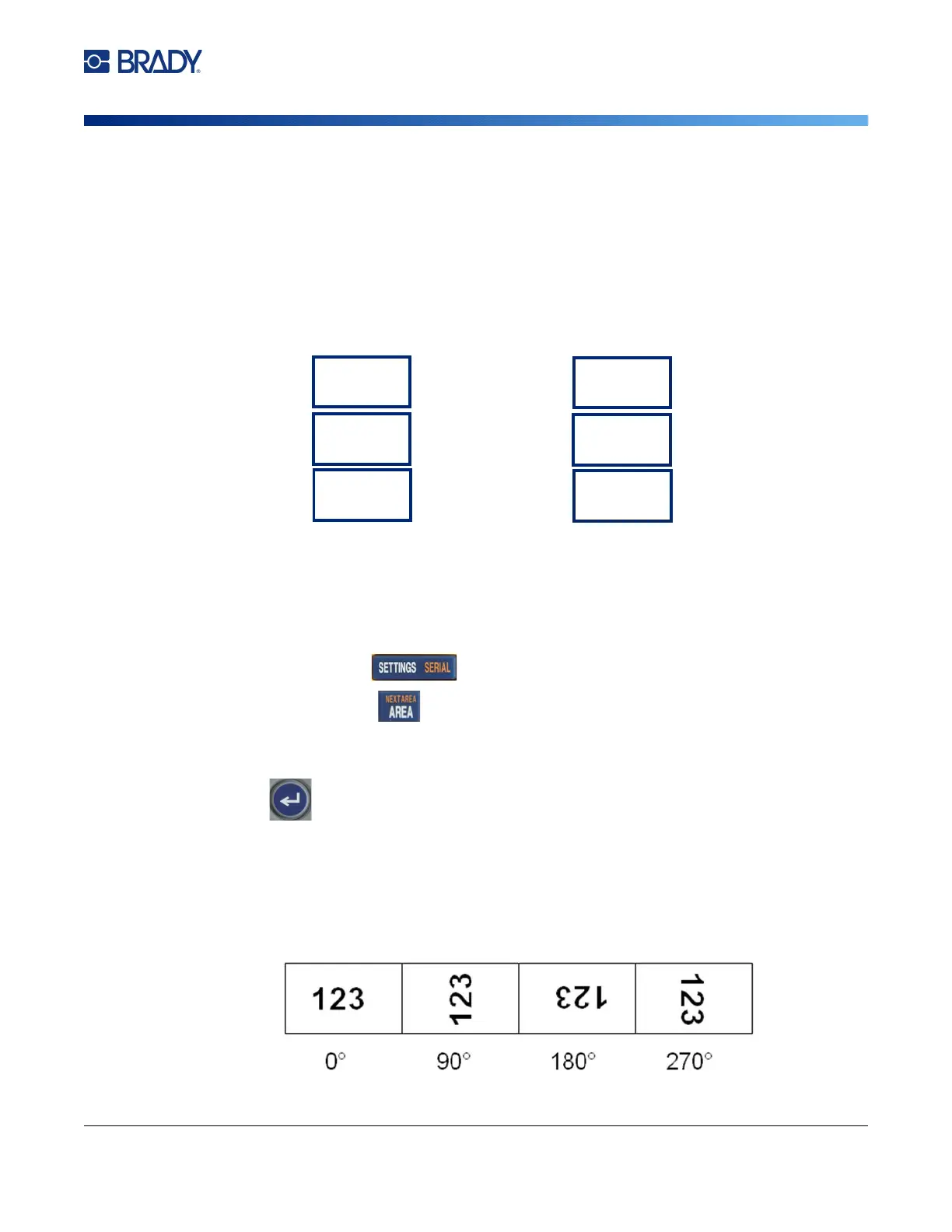 Rotation flips the data on a label or in an area counter-clockwise in 90° increments. Rotation affects all