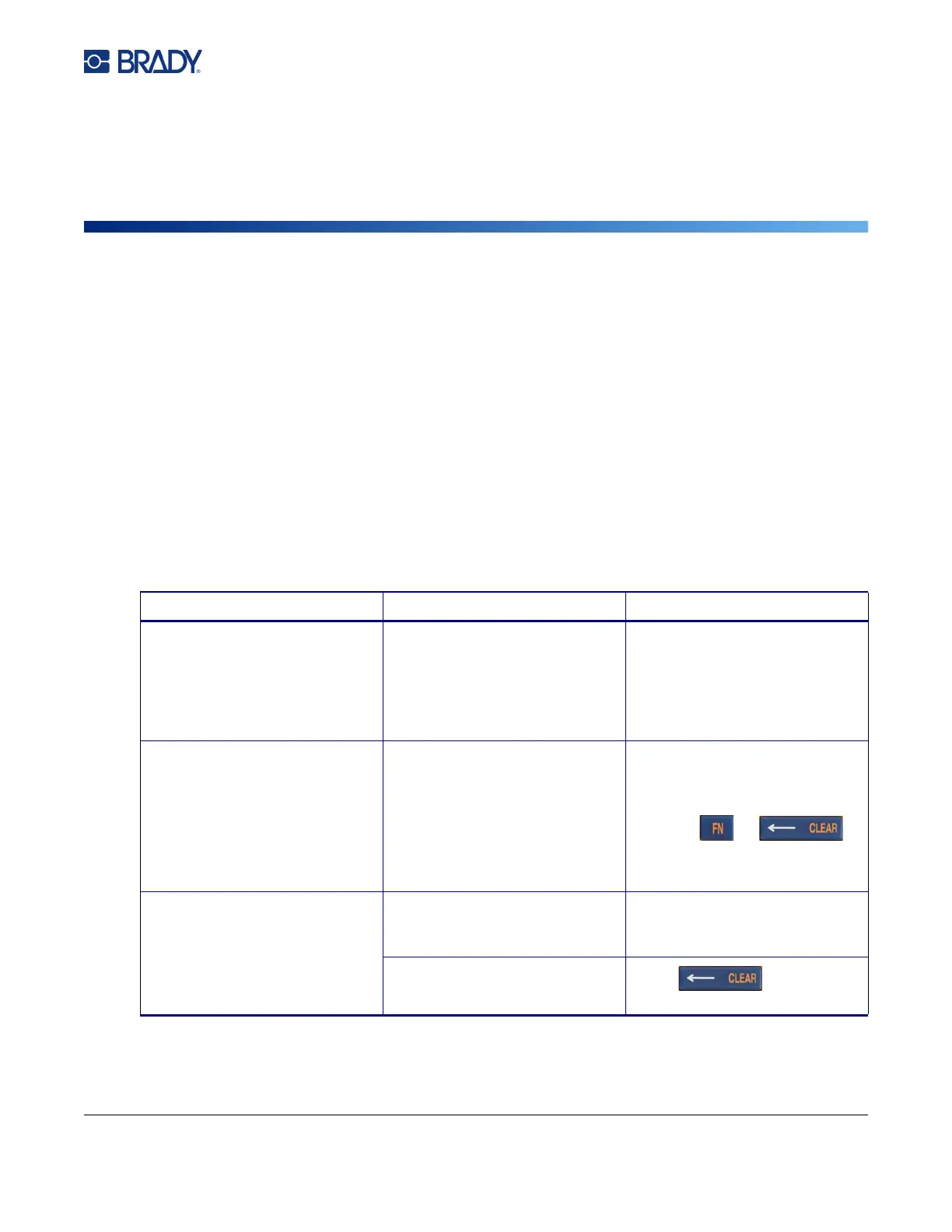 printer. If the corrective action suggested does not work, contact Brady’s Technical Support Group.