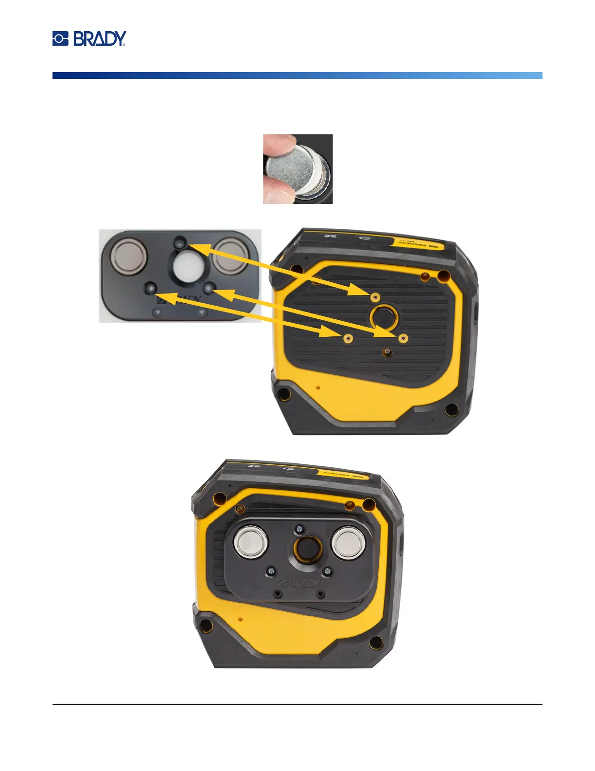 2. Position the magnet accessory on the back of the printer so that the screw holes line up.