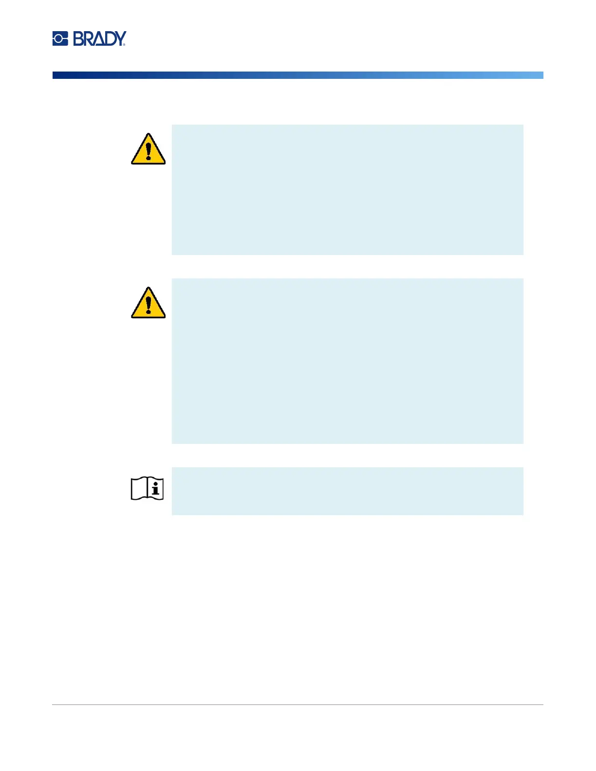 • The battery pack should only be used and charged in a Brady compatible