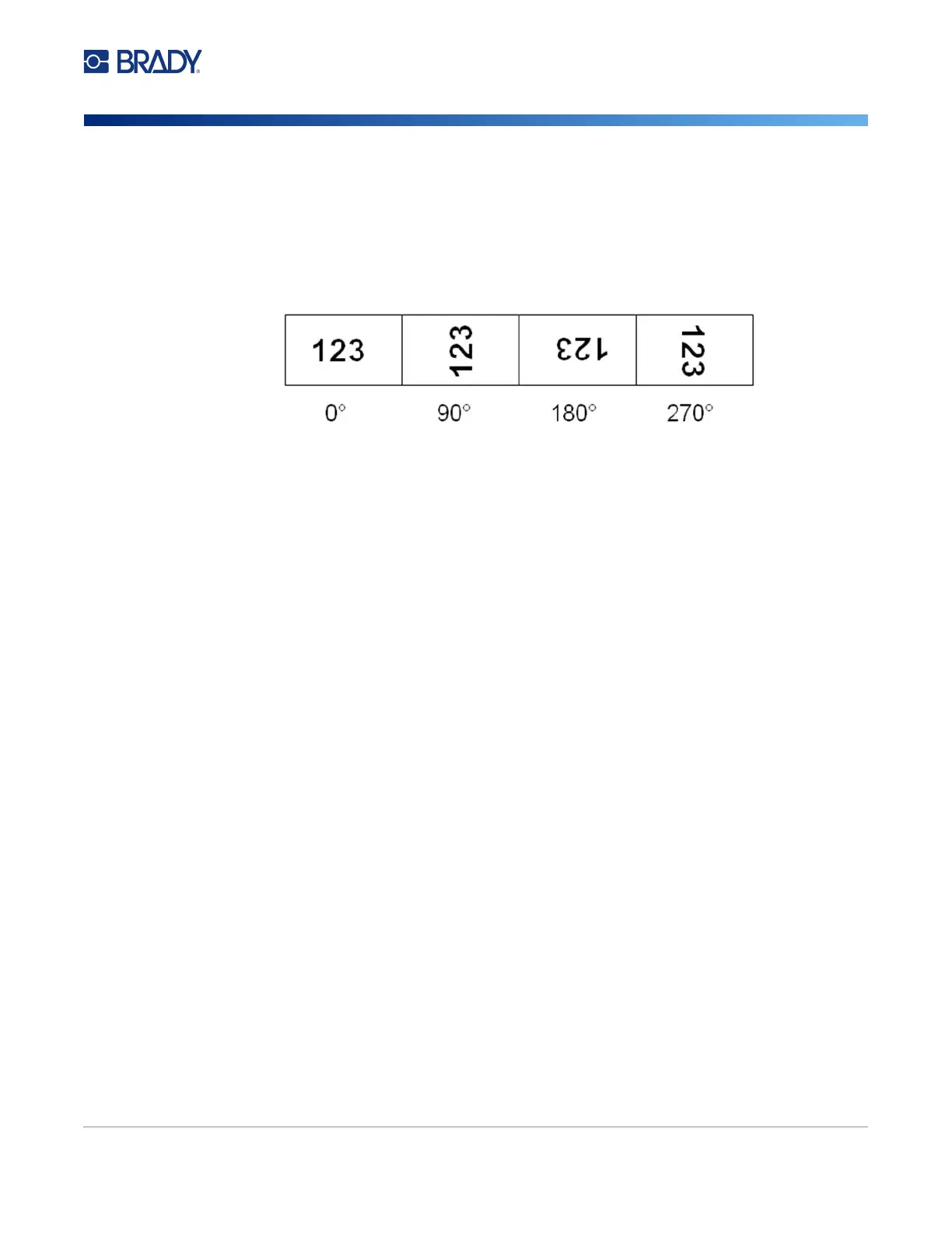 Rotation flips the data on a label or in an area, counter-clockwise, at 90° increments. Rotation affects