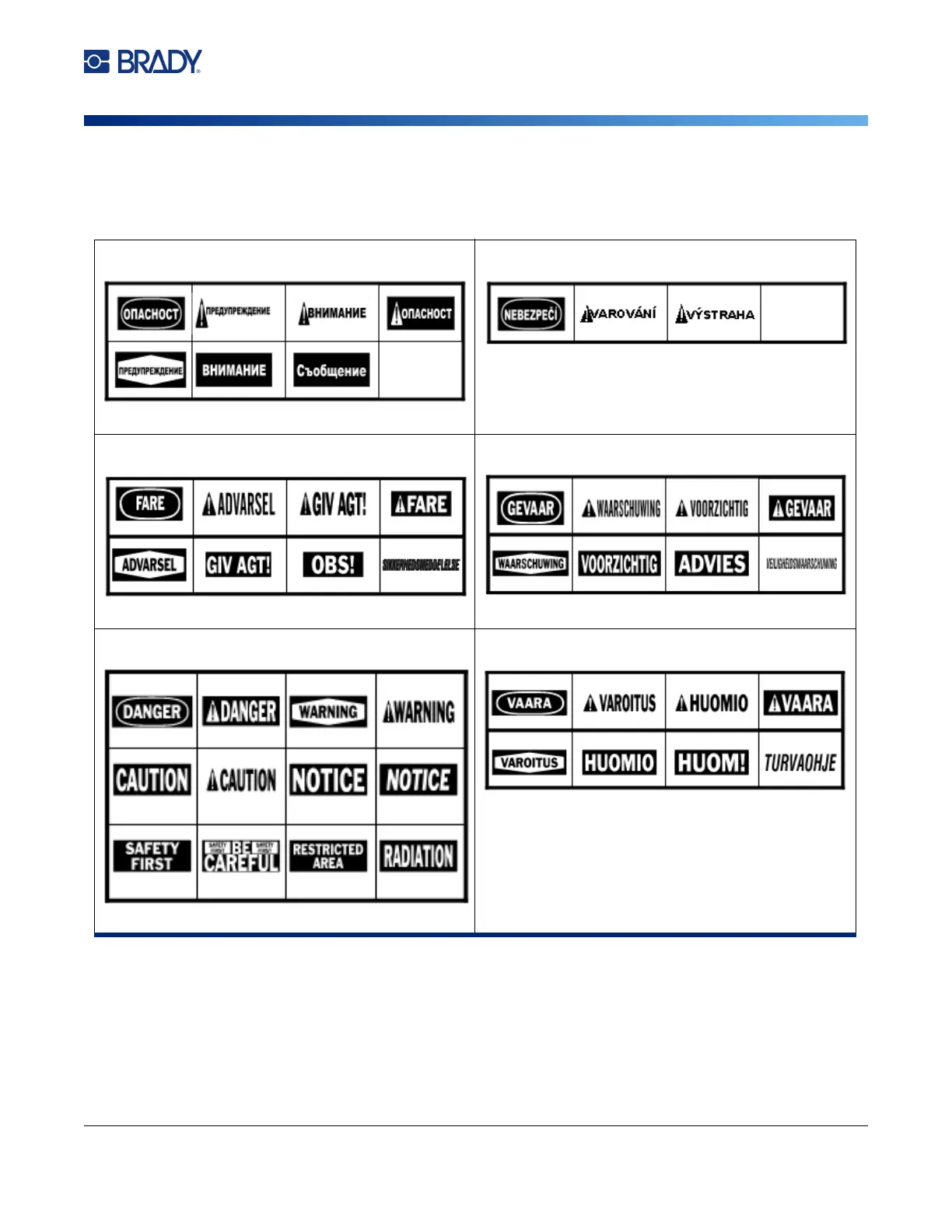 Safety sign headers are not available in all languages. If your printer is set to a language not included