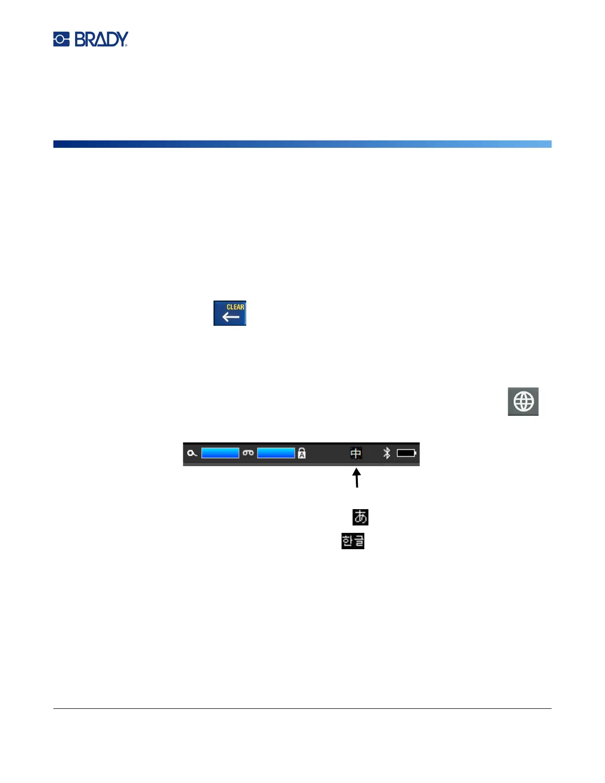 For Korean, the character in the status bar is .