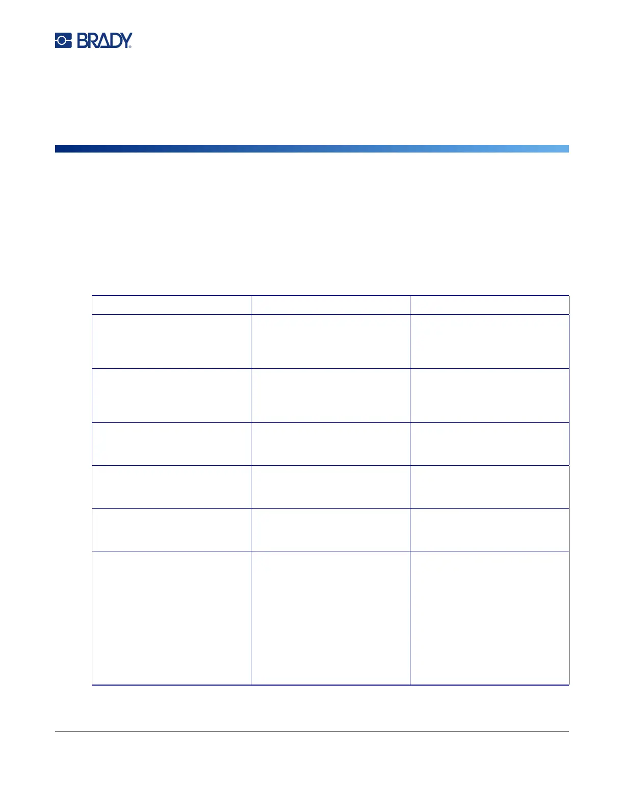 printer. If the corrective action suggested does not work, contact Brady’s Technical Support Group.