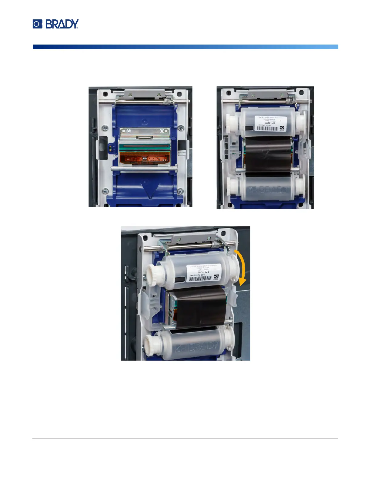 3. Orient the new cartridge as shown above with the label on the top and the Brady logo on the