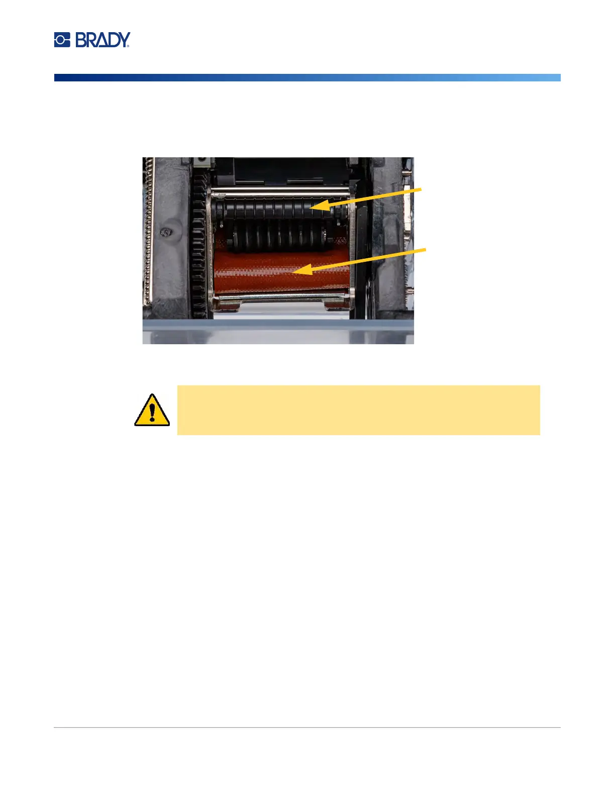 CAUTION! Failure to remove adhesive build-up will cause labels to jam on the