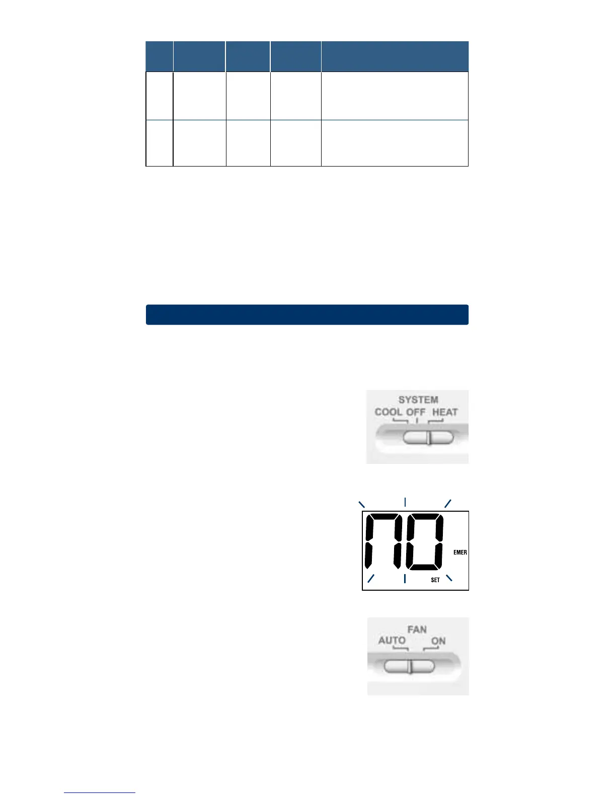 the EMER (emergency heat) option and “NO EMER