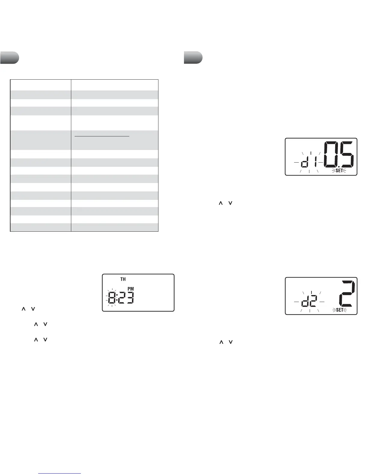 The LCD display will show "SET D1 x˚", where "x" equals the ˚F / ˚C