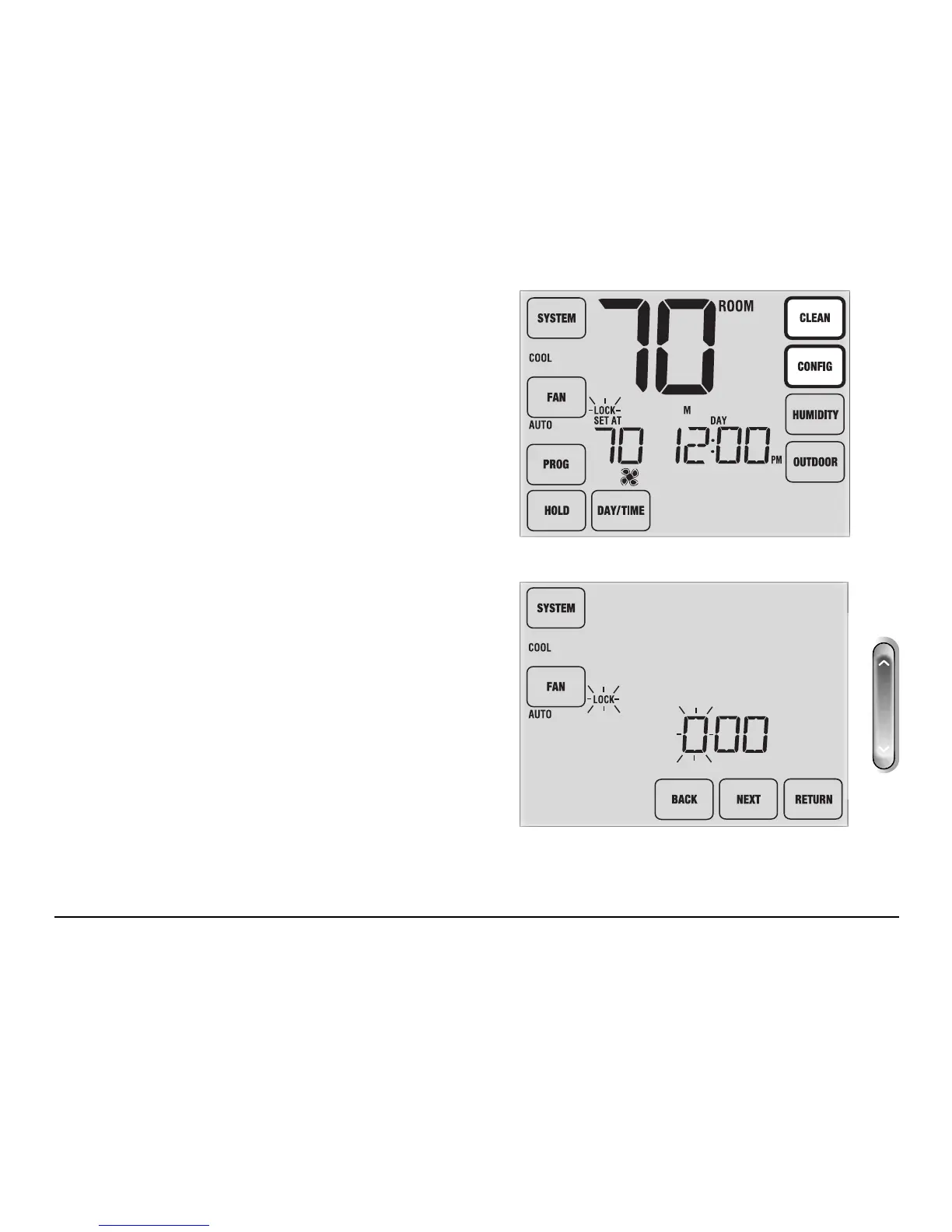 To lock or unlock the thermostat, touch and hold the CLEAN
