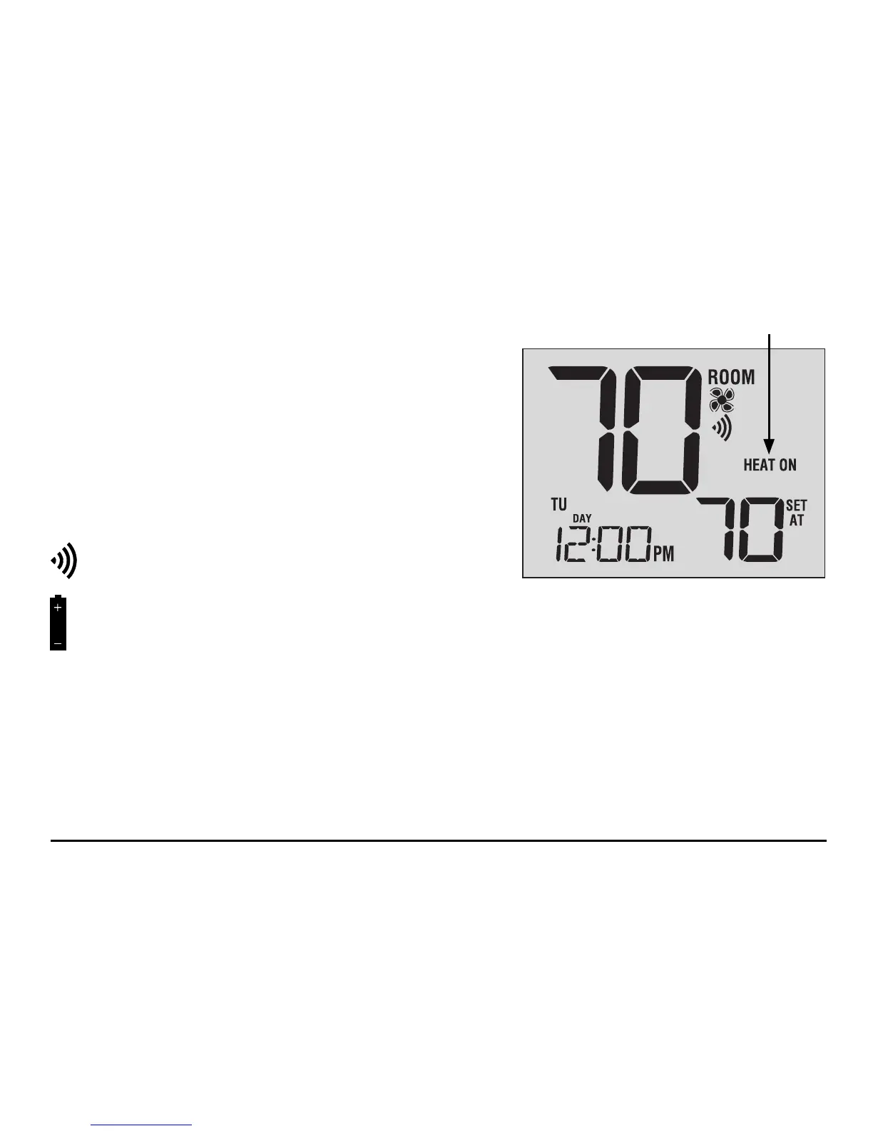 Status indicators appear in the display to let you know if your system is heating, cooling or off.