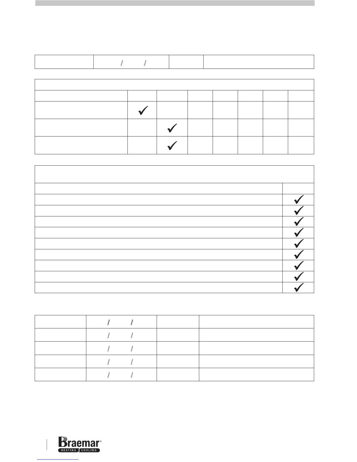 (Home owner/user must ensure that the technician signs and dates in the places indicated)