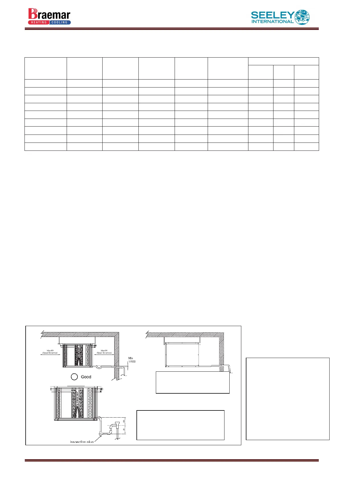 - For servicing, a minimum clearance of 600 mm must be provided in front of the access panel side of the unit for