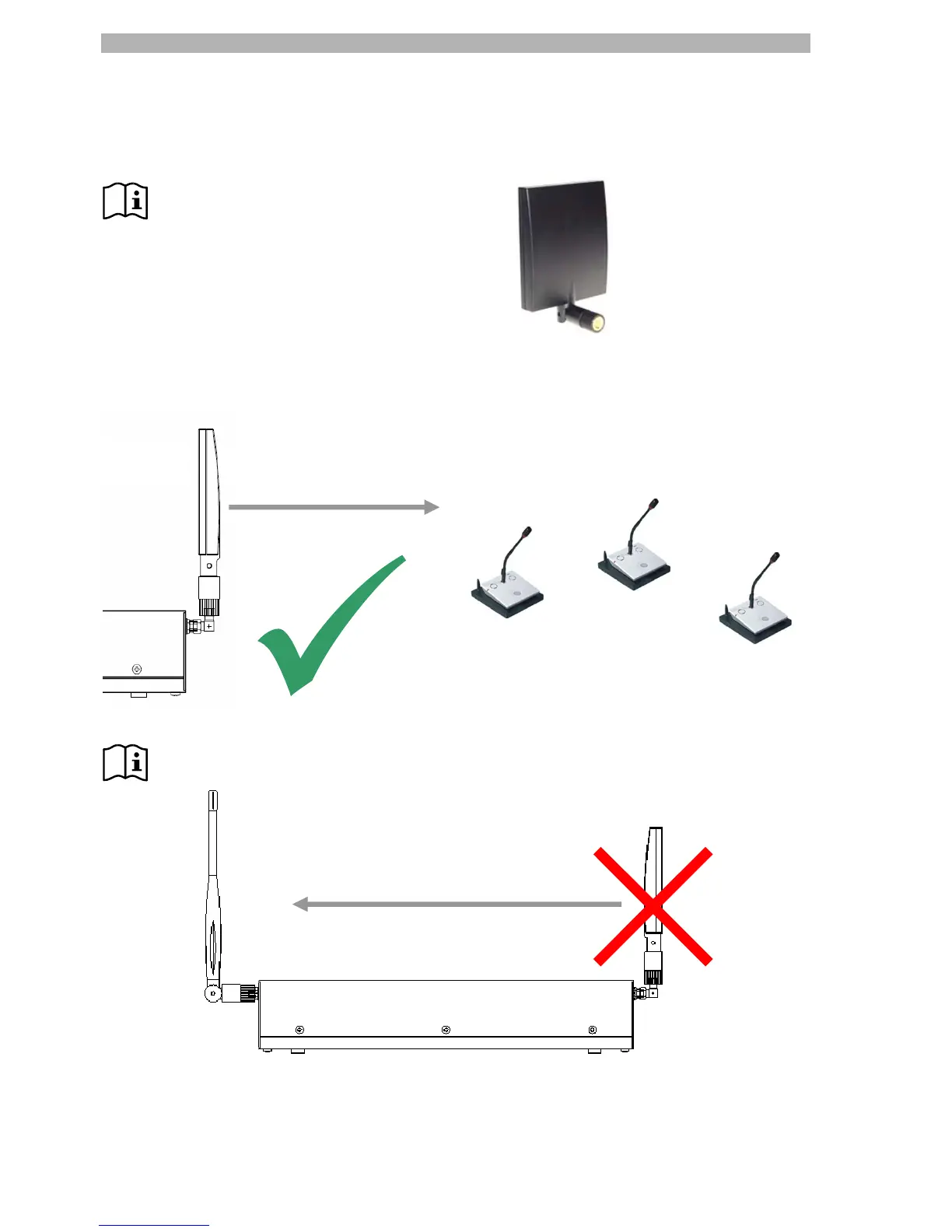 To avoid interference it is not recommended to adjust the front side of the transmitting antenna