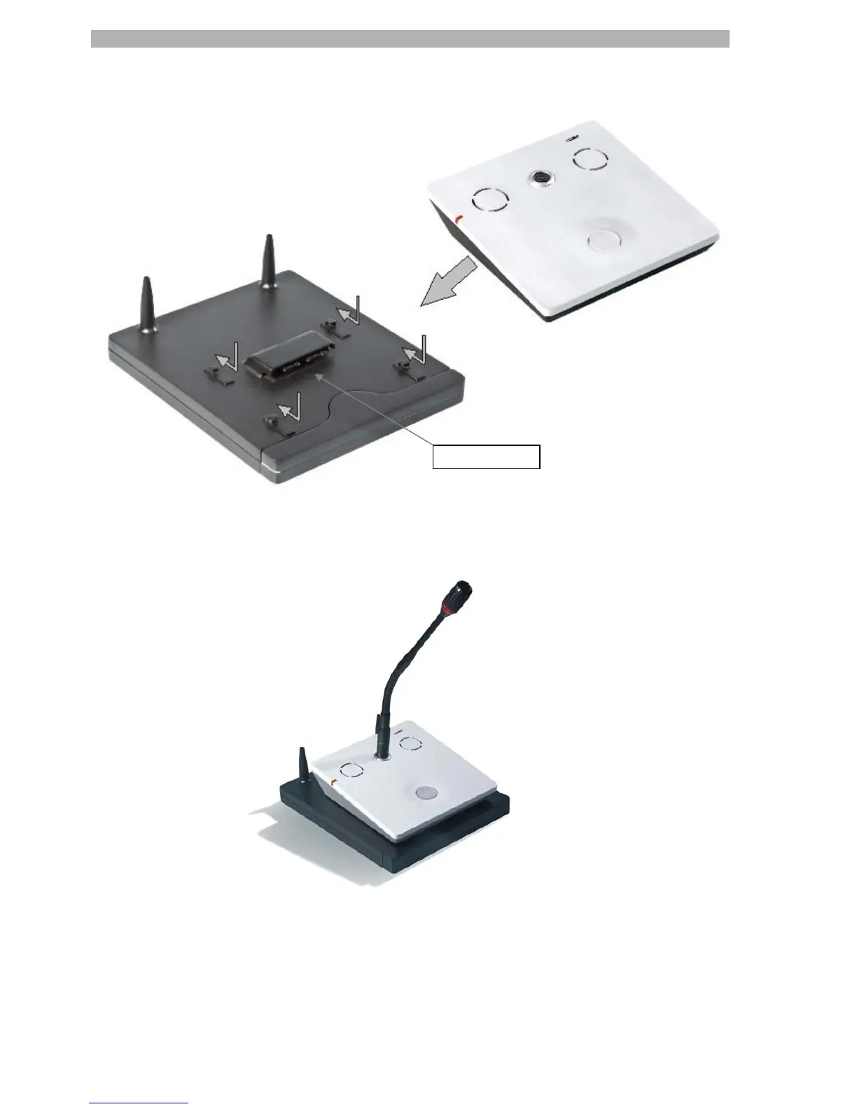 The complete Delegate Conference unit DMic with the Docking unit DDoc looks like shown below with