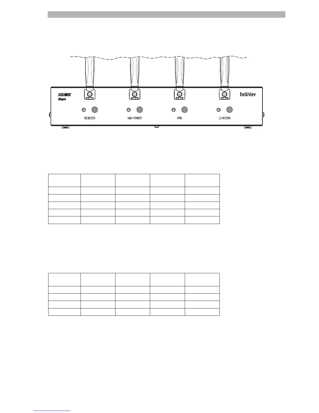 DSpark confirms this mode by blinking two times of all 4 LEDs (REGISTER + HIGH POWER + PRIO +