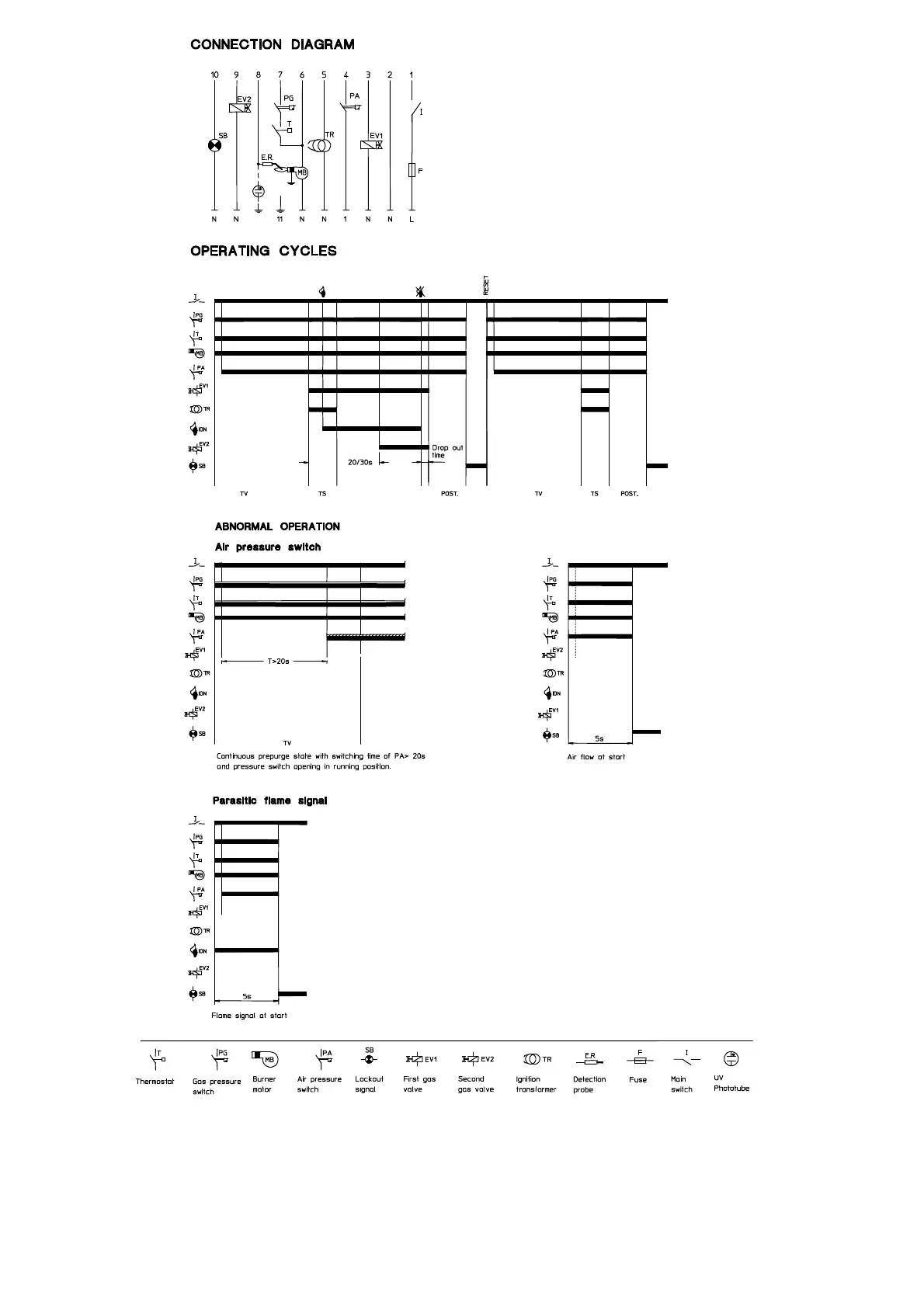 BRAHMA MF2 - OPERATING DIAGRAMS AND ABNORMALITIES; CONNECTION DIAGRAM; OPERATING CYCLES; ABNORMAL OPERATION