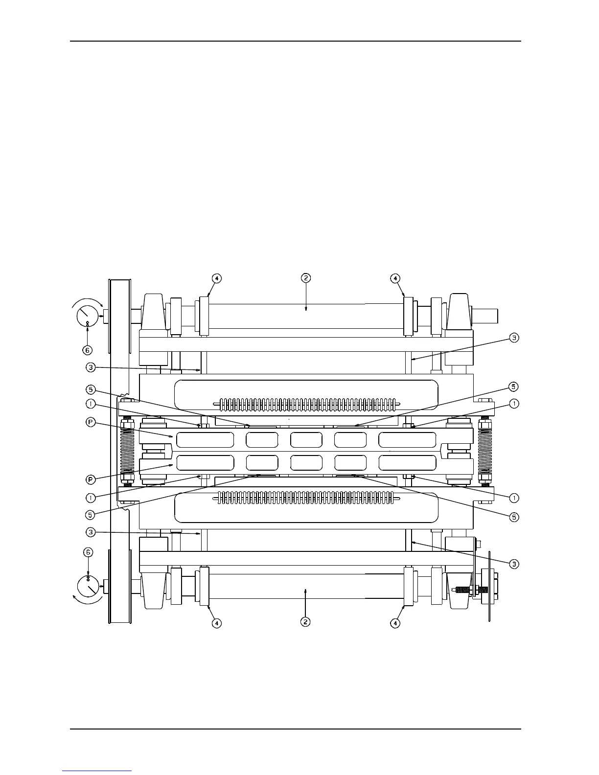 Check that the gap (5) between the press plates and the beam above, is equal on both upper and lower