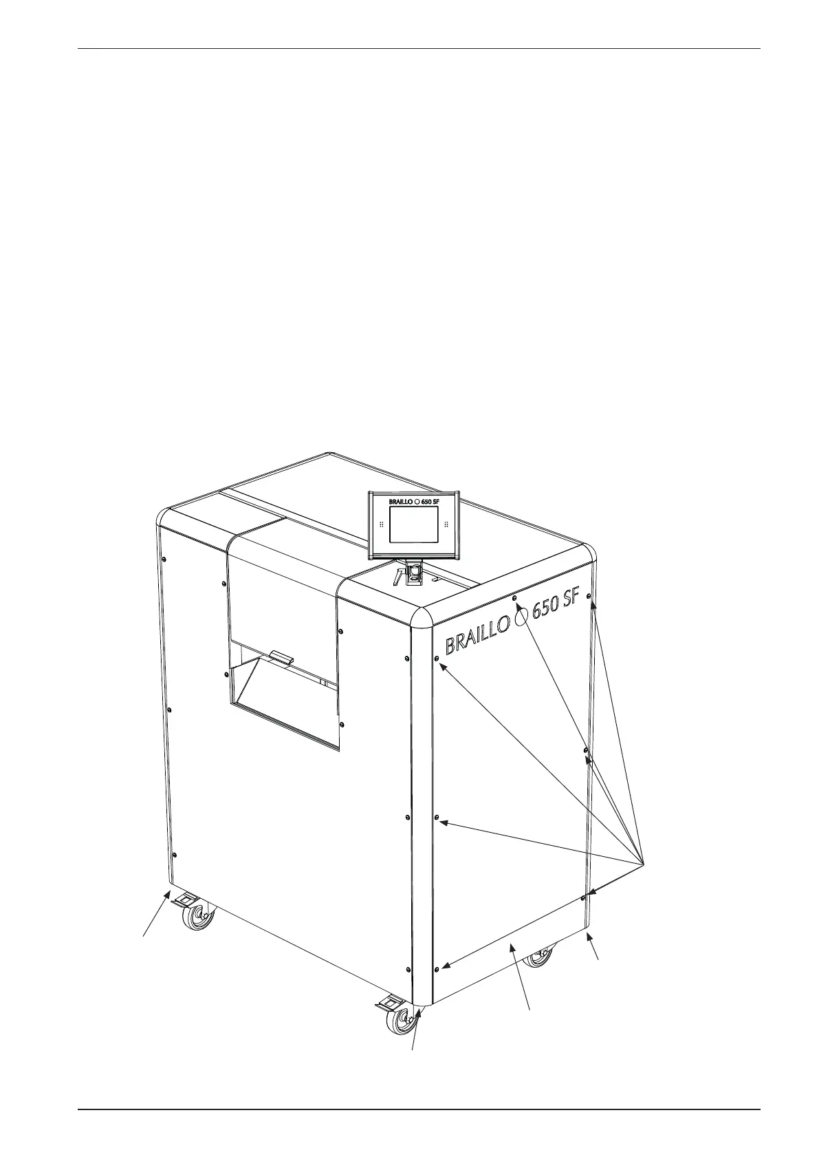 board of the Printer, there is one screw in each corner. On this frame the sides, front and back panels