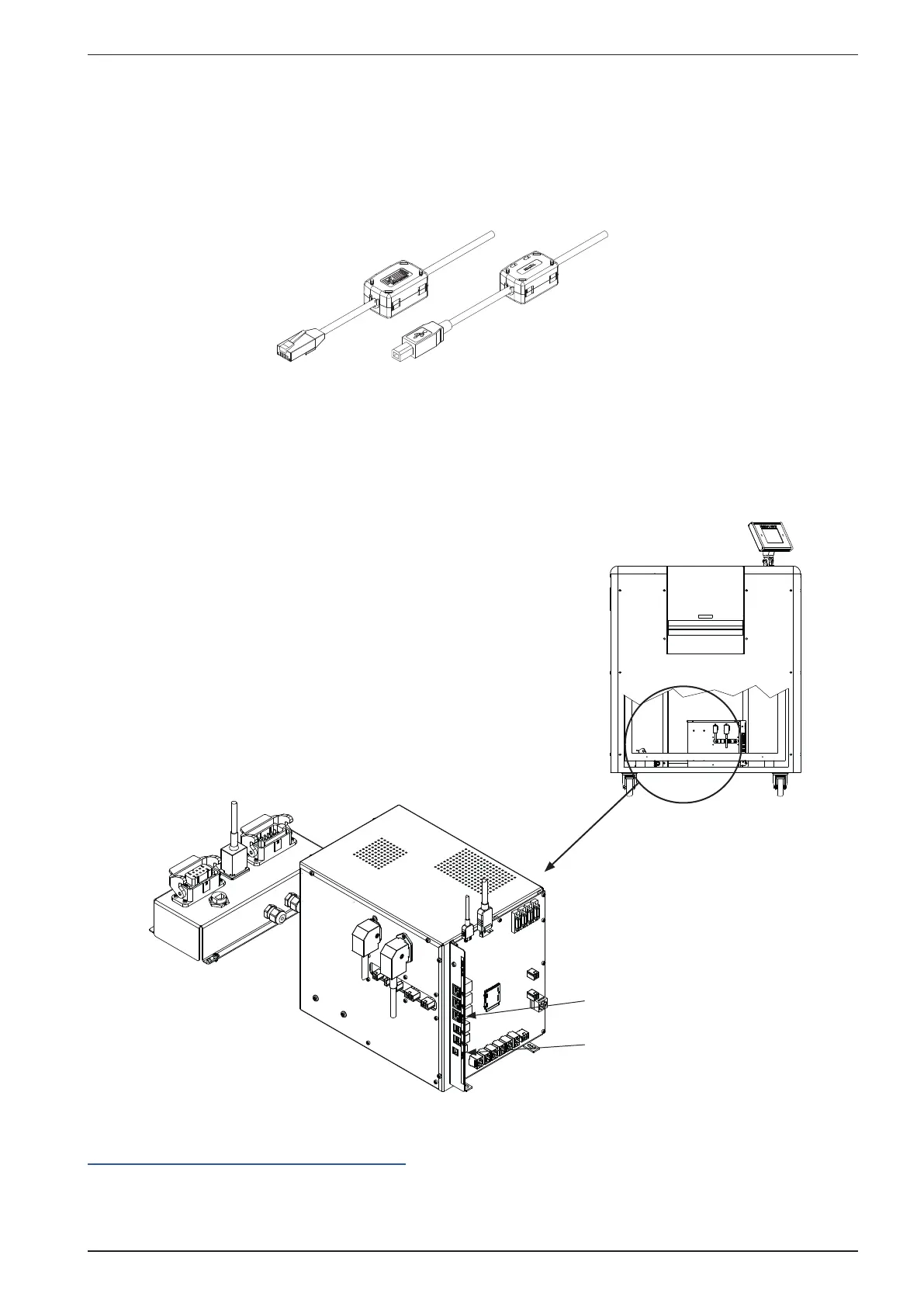 When connecting the USB or the ethernet cable, make sure the end with the ferrite bead is connected
