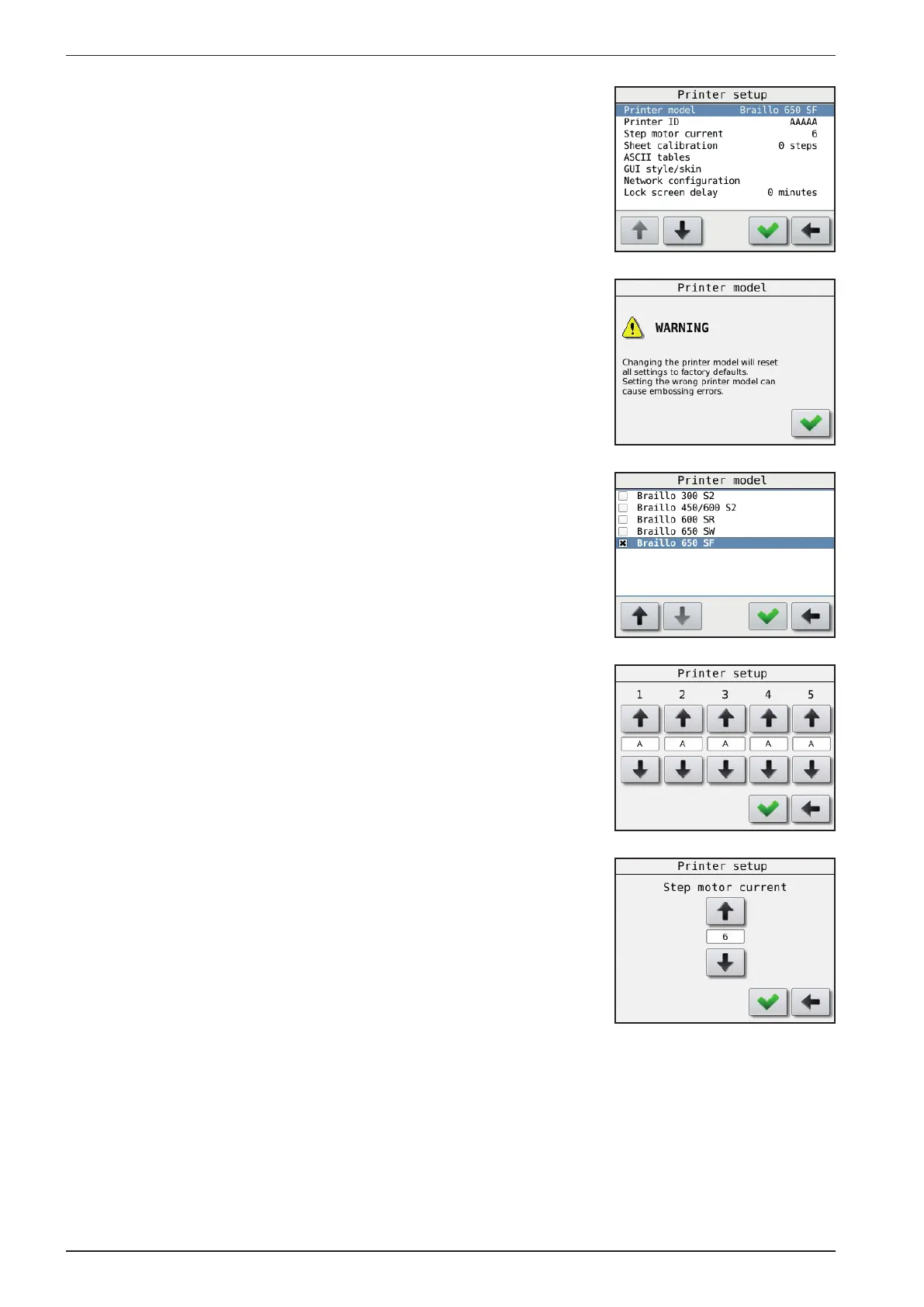 Main Menu - Printer Setup - Step motor current