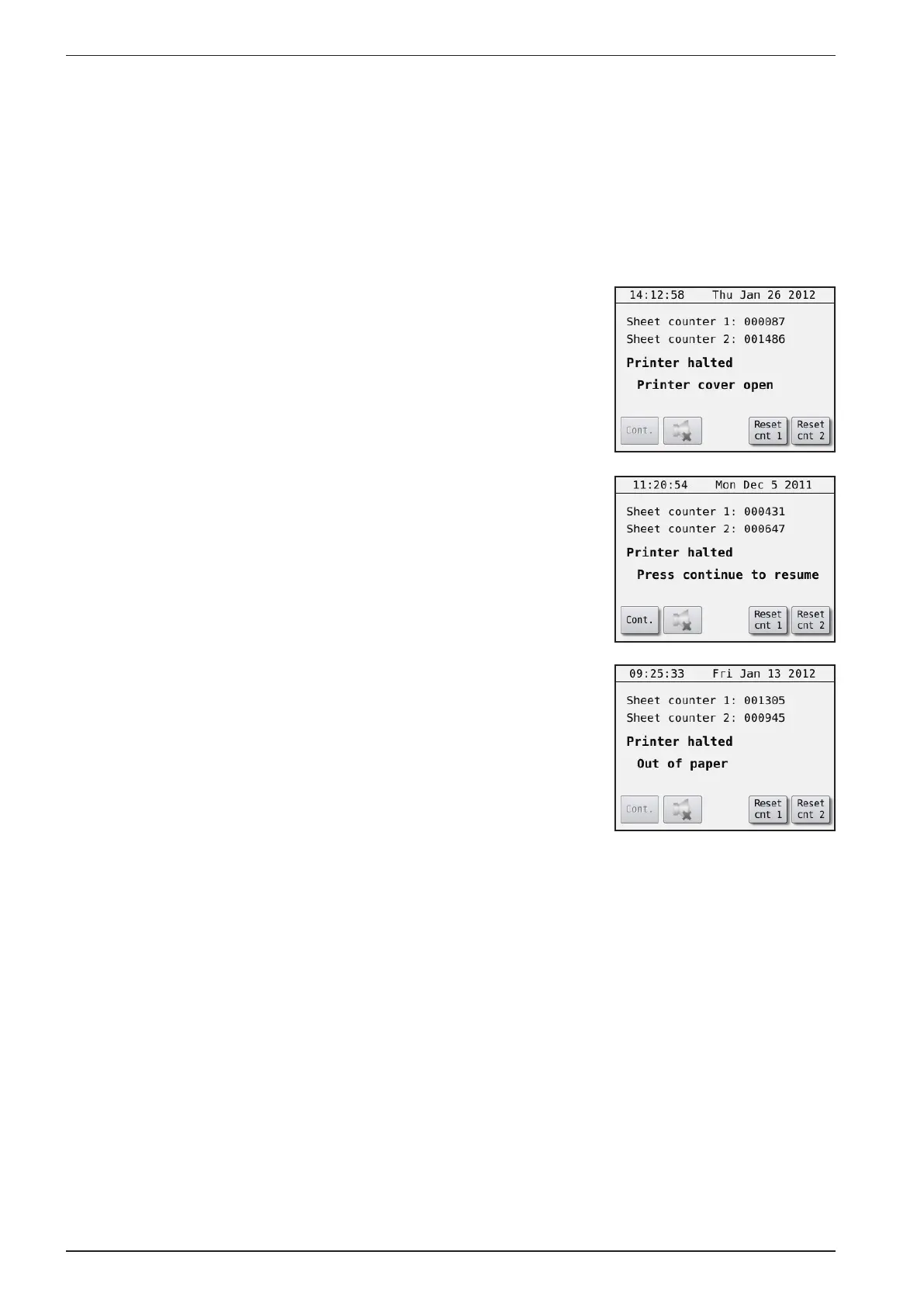 pened e. g. “Printer halted, Printer cover open”. And it will stay like