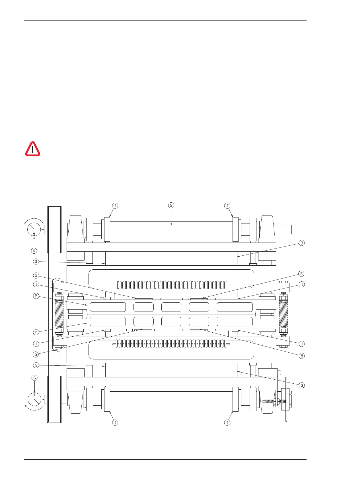 Check that the gap (5) between the press plates and the beam above, is equal on both upper and lower