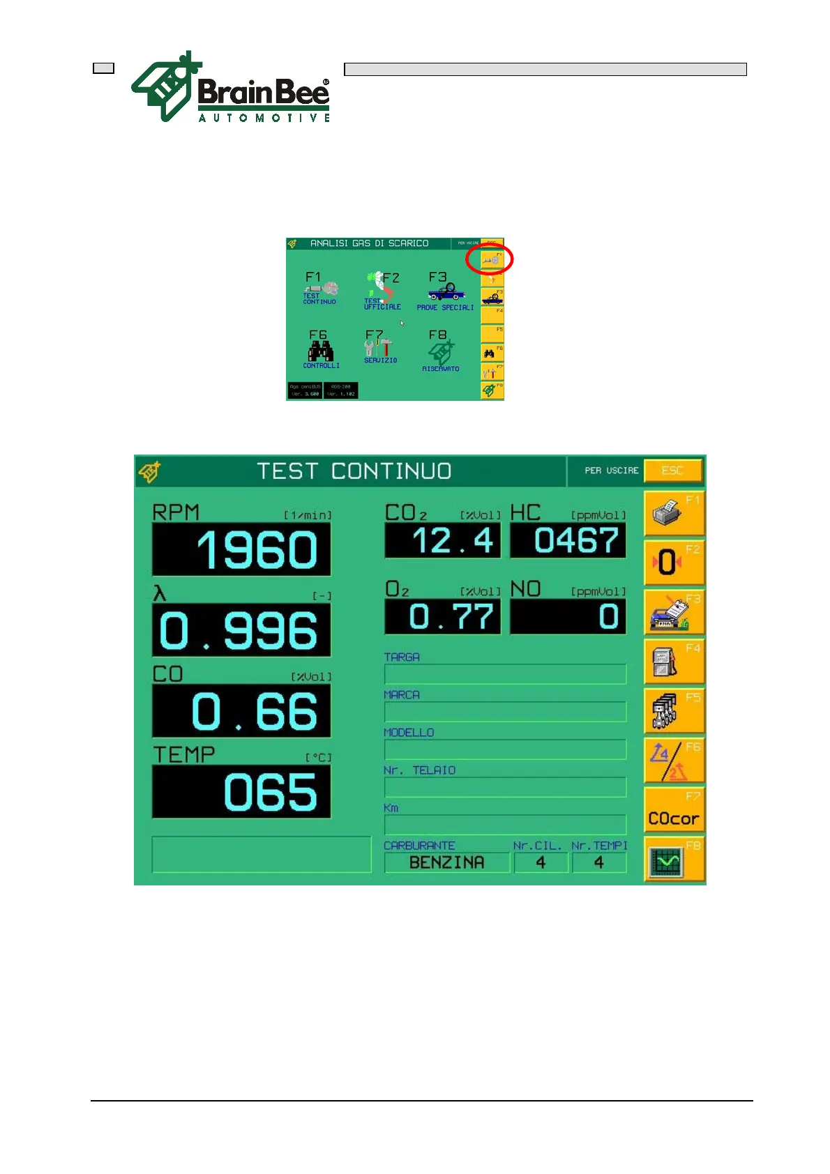 - GAS VALUES: CO, CO2, O2, HC, NO (optional)
